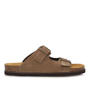 Laczki kapcie na klinie Adanex 28760 beżowe regulowane na spinkę