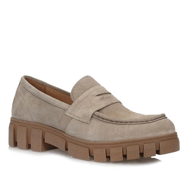 Skórzane Mokasyny na platformie Nessi 21086 beżowe