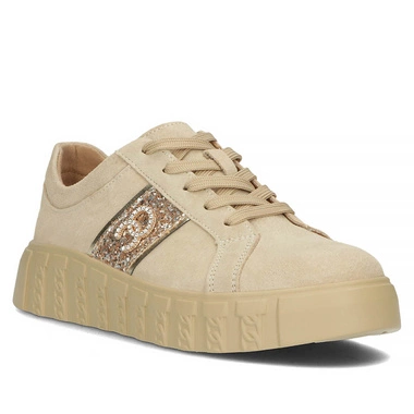 Modne Damskie botki Workery beżowe Potocki 24-12178BG cekiny