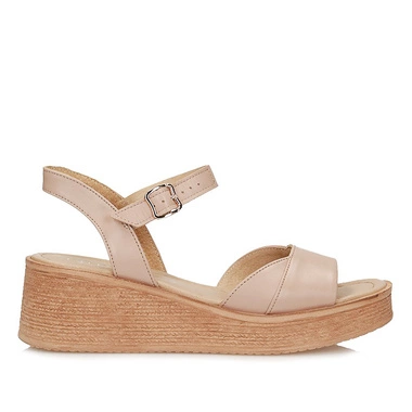 Beżowe skórzane Sandały na koturnie Ryłko 3MG17_Z_Z02F