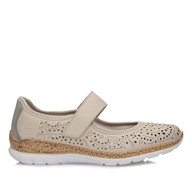 Beżowe skórzane Botki damskie na platformie Rieker 70404-80