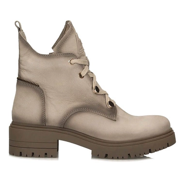 Stylowe Klasyczne damskie workery Nessi 24673 nubuck beżowe sznurowane