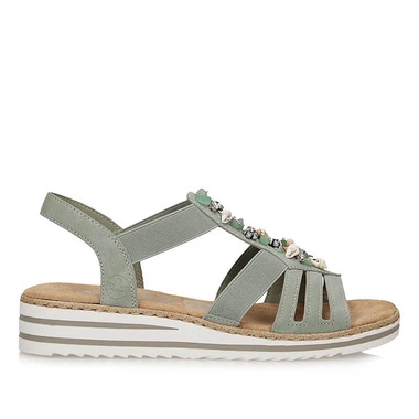 Wygodne sandały damskie Rieker V0245-52 zielone na klinie