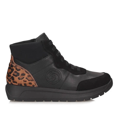 Wygodne czarne botki damskie z panterką Remonte D2V70-03