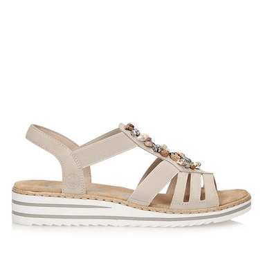 Eleganckie sandały damskie na klinie Rieker V0649-62 z muszelkami
