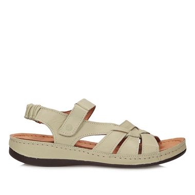 Skórzane sandały damskie na obcasie Vinceza 62238 BE beżowy