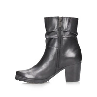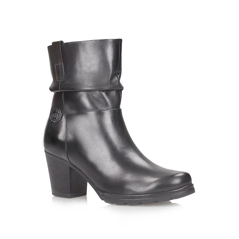 Pomimo, że naszym rynkiem zawładnęły różnorodne modele botek to projektanci marki Marco Tozzi postawili na klasyczną czerń w odsłonie botka, który sięga połowy łydki. wygodny zamek błyskawiczny pozwala na szybkie zakładanie i zdejmowanie botka, dzięki czemu, my kobiety zyskujemy na czasie. Na cholewce znajdują się fajne maszczenia, które nadają botkom niepowtarzalnego uroku. Stabilny obcas o wysokości 7,5 cm pozwala uwydatnić nasze kobiece wdzięki, a jednocześnie nadaje botkom wielofunkcyjności, ponieważ świetnie będą pasować zarówno z dżinsami jak i elegancką spódnicą. W grubej podeszwie zastosowano odpowiednią strukturę, dzięki której mamy czuć się pewnie z każdym krokiem. Niezwykle miękka i miła w dotyku ocieplina wewnątrz spowoduje że będziemy czuć się na zrelaksowane nawet po wielu godzinach użytkowania.