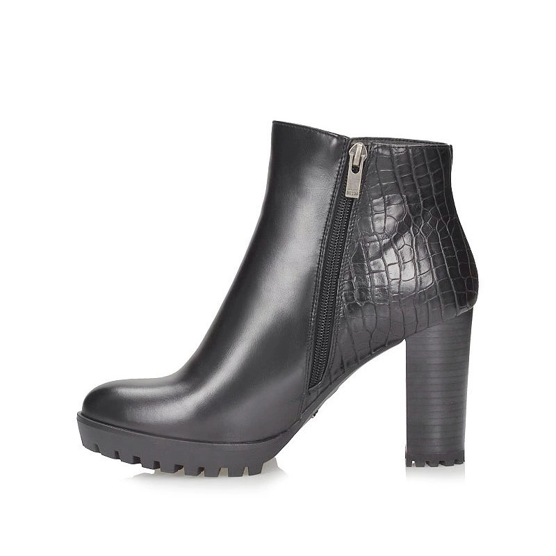 Dominantą w najnowszych modelach botek jest traperowa struktura grubej, masywnej podeszwy. Od projektantów pracujących na sukces marki Big star otrzymaliśmy bardzo fajny model, który różni się od pozostałych. Oczywiście model posiada traper jednak nie tylko na podeszwie, wyprofilowany obcas został również oparty na traperze. Ten atut pozwoli nam z pewnością zachować równowagę podczas nie jednego spaceru po oblodzonych chodnikach. Wierzch w odcieni czerni świetnie skomponuje się z każdą jesienną stylizacja i perfekcyjnie ją dopełni. Wygodny zamek ułatwi nam zakładanie i zdejmowanie obuwia, dzięki czemu zaoszczędzimy trochę czasu. O odpowiednie warunki mikroklimatyczne dla stóp zadba najwyższej jakości tkaniną, którą model został wyściełany.