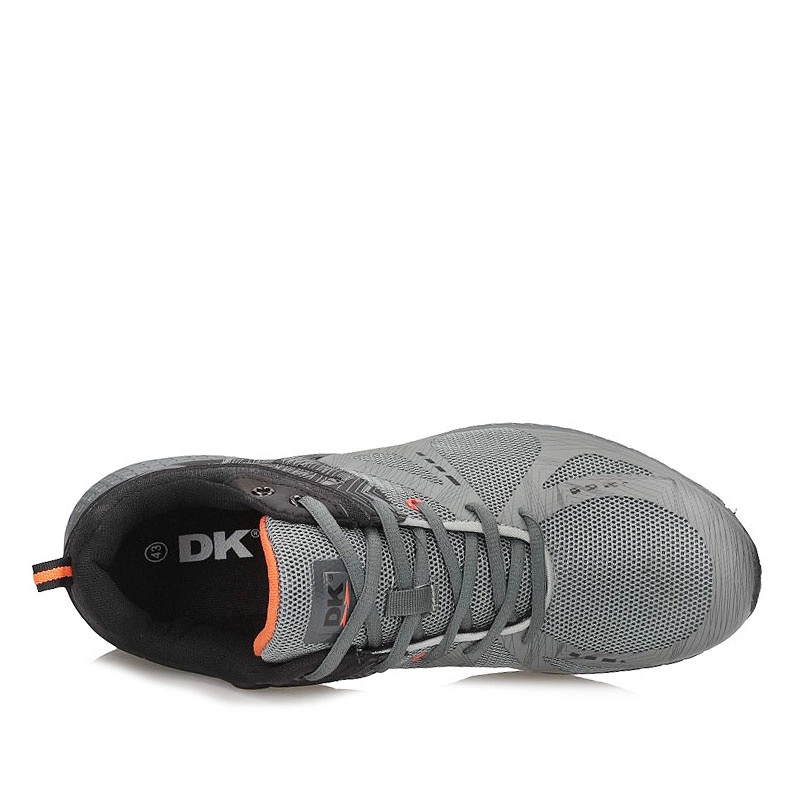 Doskonałą propozycją dla osób uprawiających jogging, a także spędzających aktywnie czas podczas wędrówek czy na siłowni są buty sportowe marki DK. Cholewka wykonana została z wysokiej jakości materiału tekstylnego pozwalającego na odpowiedni przepływ powietrza wewnątrz buta w kolorze szarym oraz czerni. Model sznurowany na 6 oczek, dzięki czemu cholewka dopasowuję się do każdej tęgości stopy. Wnętrze wyściełane wysokogatunkową tkaniną, która zapewnia odpowiedni komfort oraz wygodę. Podeszwa w kolorze szarym ma właściwości antypoślizgowe wykonana została z tworzywa gumowego.