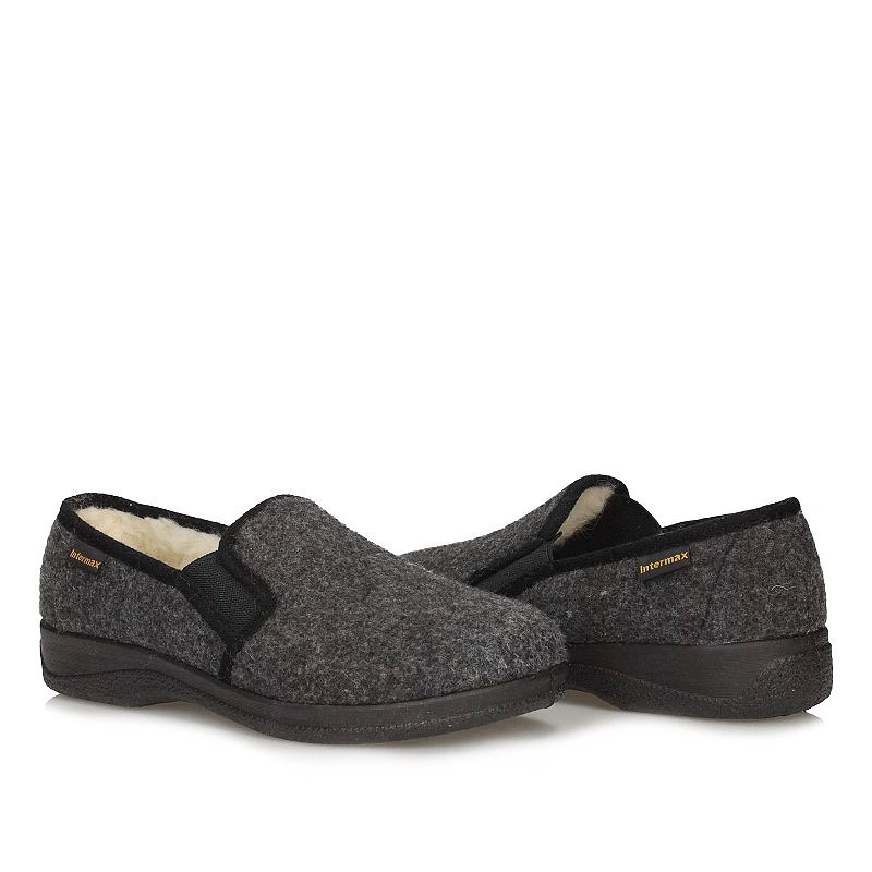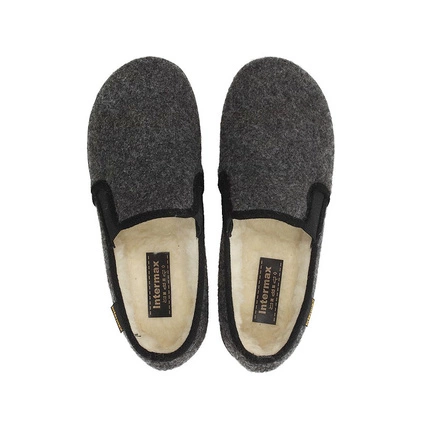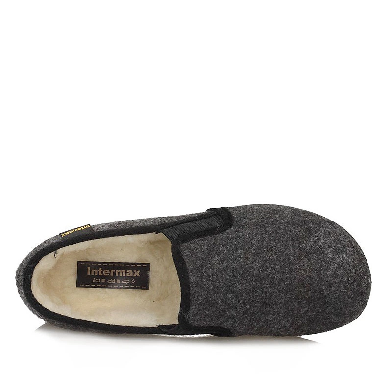 Marka Intermax również zadba o stopy Panów i sprawi, że codzienne użytkowanie w domowym zaciszu przyniesie komfort i wygodę. Męskie bambosze wykonane zostały z naturalnego filcu w odcieniach szarości. Wnętrze wyściełane naturalną ociepliną, która sprawi, że stopy będą otulone ciepłem w chłodne jesienno-zimowe dni. Elementem ozdobnym jak i praktycznym są gumowe wstawki, które dopasują się do różnego rodzaju tęgości stopy.