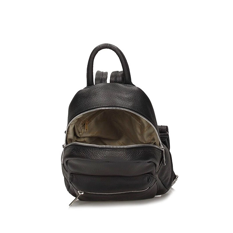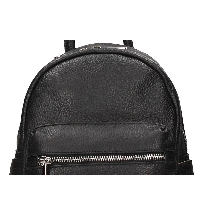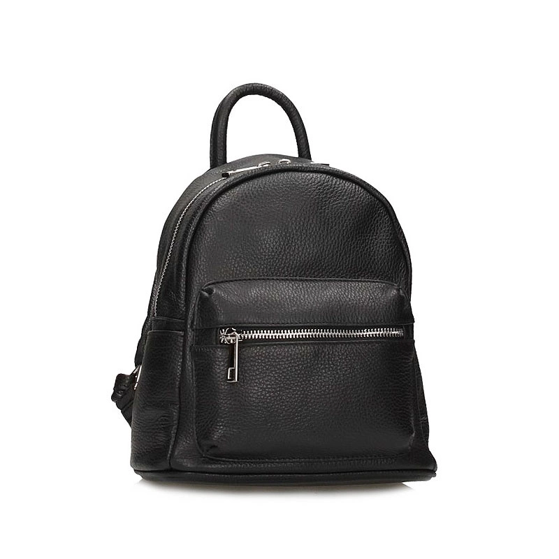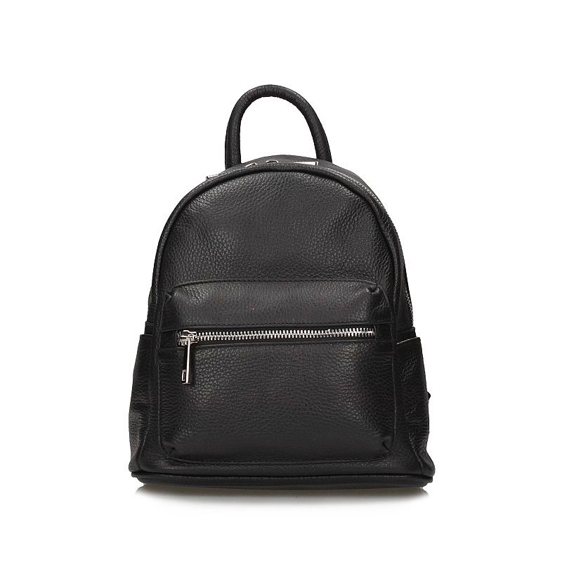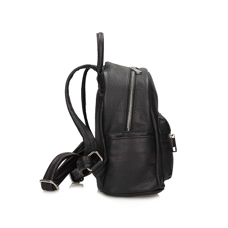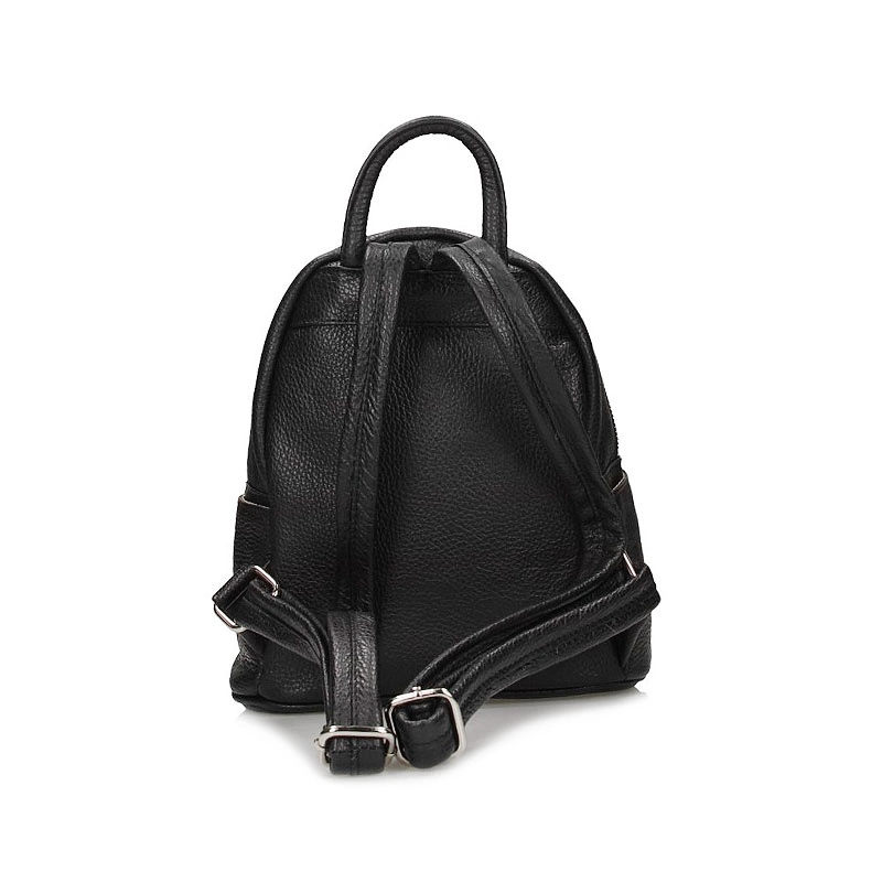 Włoska firma Toscanio prezentuje mały, przepiękny plecak wykonany ze skóry naturalnej w kolorze klasycznej czerni. Fason jednokomorowy zapinany na zamek. Wewnątrz posiada 2 kieszonki na kobiece drobiazgi oraz 3 na zewnątrz, które z pewnością pomieszczą najpotrzebniejsze rzeczy. Plecak posiada usztywnione dno oraz regulowane rączki, które dopasować można do indywidualnych potrzeb. Idealnie skomponuje się z kobiecymi stylizacjami zarówno sportowymi jak i eleganckimi.
