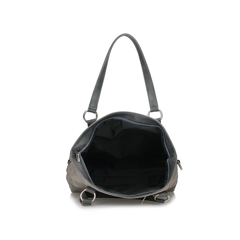 Wyśmienita marka Carla Berry prezentuje klasyczną torebkę wykonaną z ekologicznej licowej skóry w odcieniu szarości. Fason jednokomorowy, zapinany na zamek. Wewnątrz znajdują się dodatkowe, praktyczne kieszonki na kobiece drobiazgi. Torebka posiada dwie średniej długości rączki, które umożliwiają noszenie jej na ramieniu lub w dłoni. Dodatkowo została wyposażona w długi regulowany pasek co pozwoli na noszenie jej przez ramię. Model świetnie dopełni każdą kobiecą stylizację, a stonowany kolor idealnie współgrać będzie z dużą gamą kolorów.