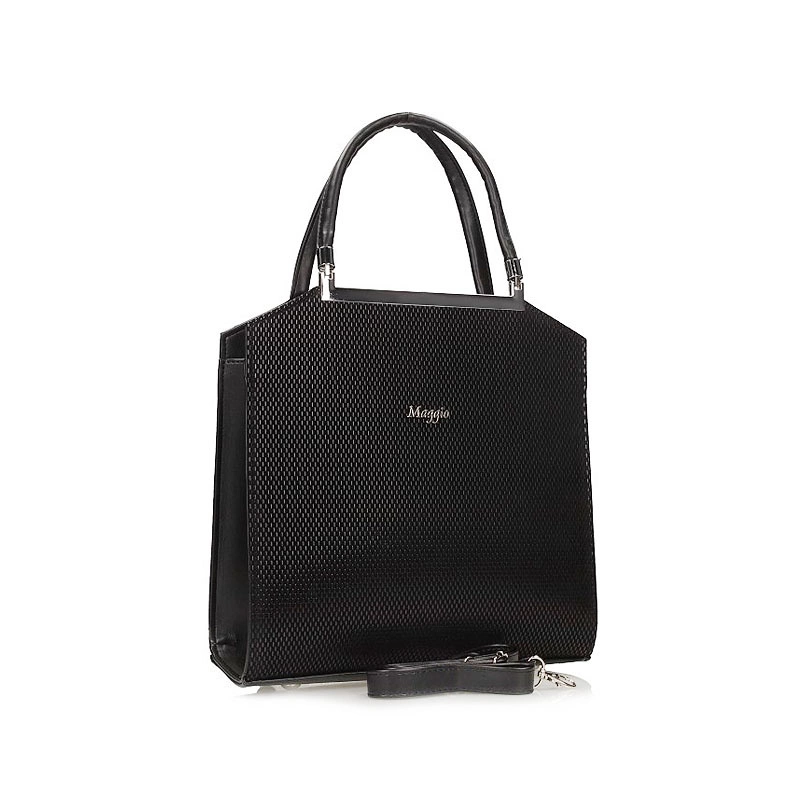 Torebka marki Maggio wykonana została z ekologicznej skóry z widocznymi w przodzie tłoczeniami. Idealna do noszenia w ręku jaki i na ramieniu dzięki dopinanemu paskowi. Model bardzo elegancki i szykowany ze srebrnymi dodatkami. Model jednokomorowy z wydzielonym miejscem na telefon komórkowy. Spód wzmocniony metalowymi nóżkami.