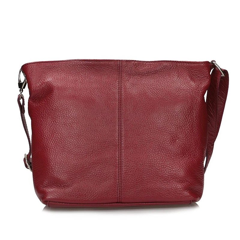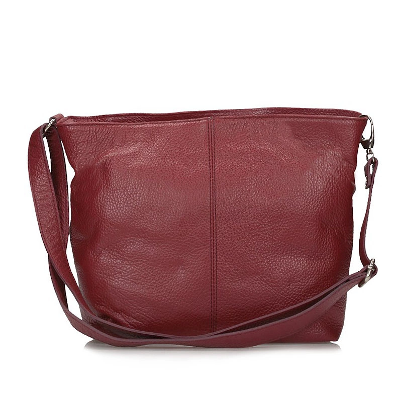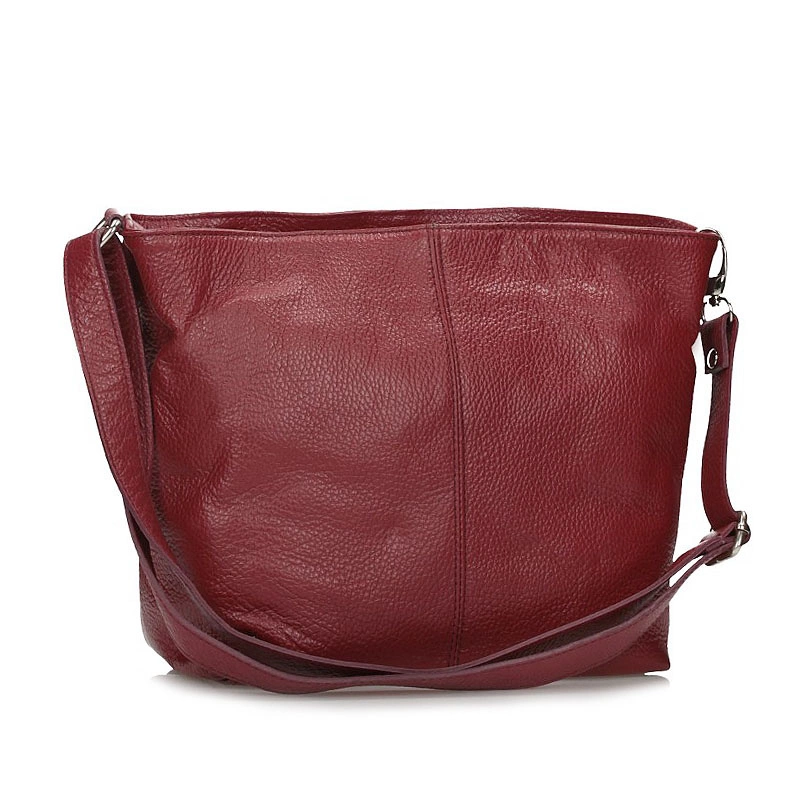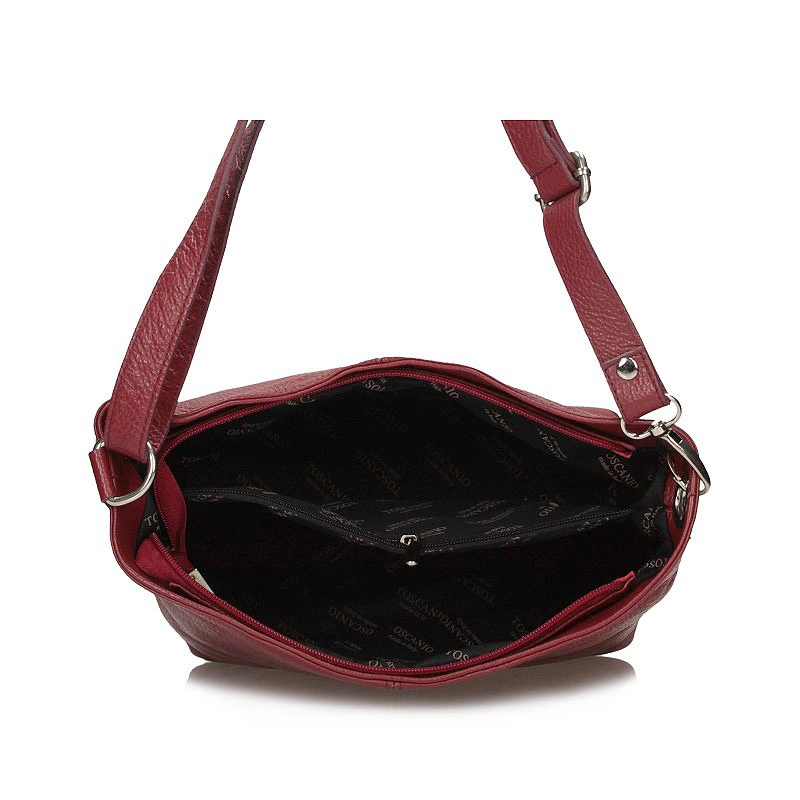 Włoska marka Toscanio prezentuje pojemną torbę typu miejskiego, dwukomorową zapinaną na suwak. Do jej produkcji użyto miękkiej skóry naturalnej w pięknym oryginalnym odcieniu bordo. Wewnątrz znajdują się mniejsze kieszonki idealne na nasze dodatki typu kalendarz, telefon bądź też klucze. Pasek regulowany umożliwiający noszenia torebki na ramieniu. Czerwony odcień genialnie współgra z wieloma stylizacjami.