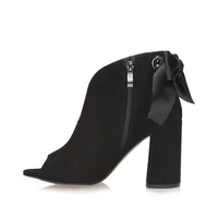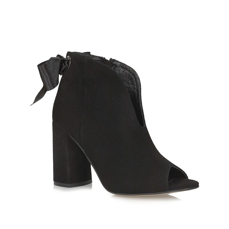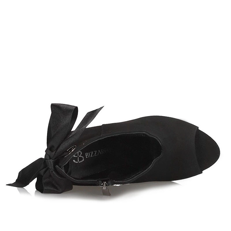 Elegancki, ponadczasowy styl botka marki Bizzarro to idealna propozycja dla kobiet lubiących klasykę z nutką nowoczesności. Cholewka została zaprojektowana tak aby obuwie można było wykorzystać w codziennych warunkach oraz uzupełnić nimi elegancką stylizację. Całość została wykonana z naturalnego zamszu. Na przodzie subtelne wycięcie, które przypomina literkę V. Dodatkowo przy kostce umieszczony został zamek, który umożliwia łatwe, i szybkie zakładanie buta. Wysoki, szerszy obcas o wysokości 9 cm optycznie wydłuży i wysmukli łydkę. Wnętrze wyściełane naturalną skórą, która dba o higienę stóp. Podeszwa wykonana z wysokogatunkowego tworzywa sztucznego, odpornego na ścieranie.