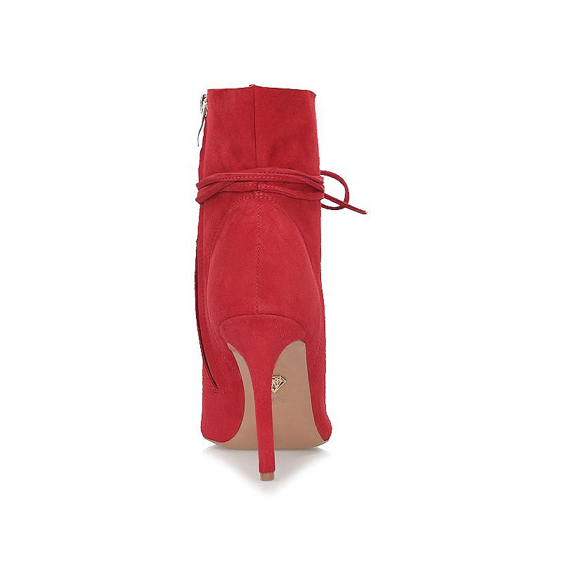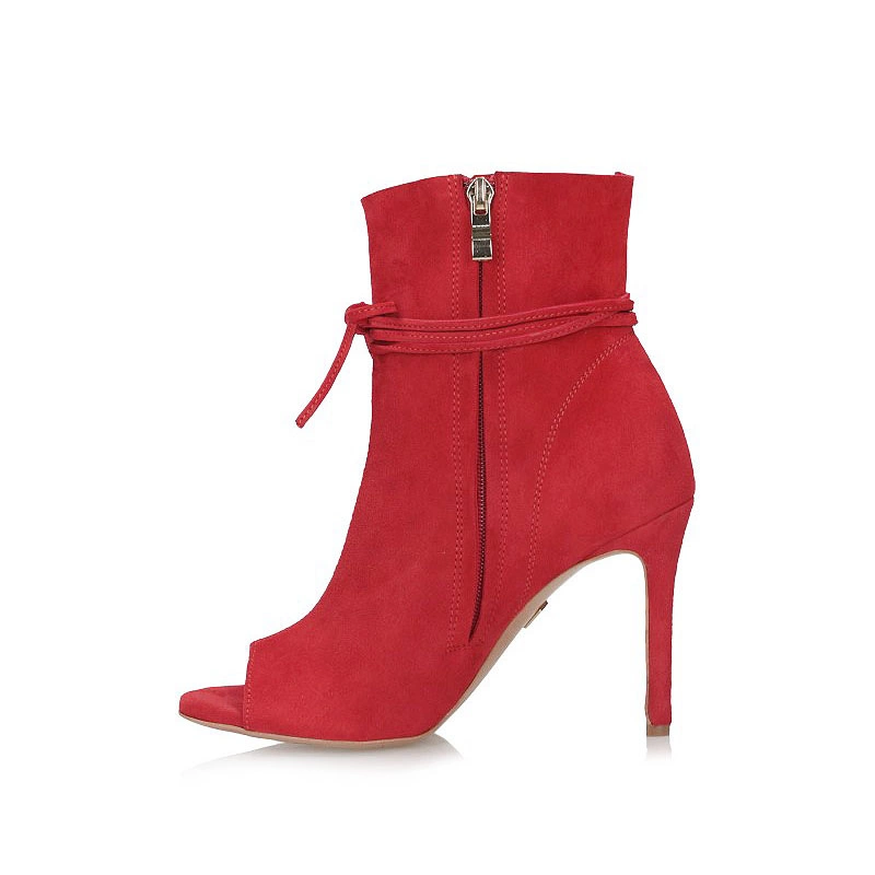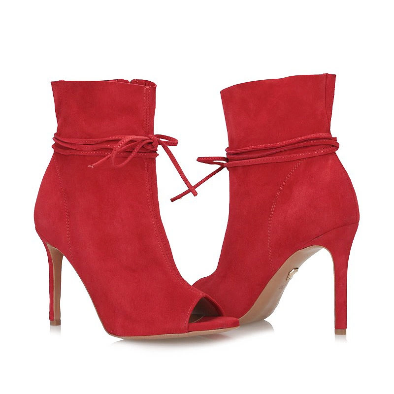 Na zbliżający się sezon ekskluzywna marka Gianmarko stworzyła pięknie prezentujące się wiązane sandały na szpilce. Powyższy model został zaprojektowany przez najlepszych projektantów którzy znają się na trendach panujących w modzie. Cholewka wykonana z miękkiej skóry naturalnej zamszowej w kolorze ognistej czerwieni została przyozdobiona subtelnym wiązaniem które podkreśli i pięknie zaprezentuję naszą nogę. Wnętrze wyściełane zostało także naturalną skórką, dającą odpowiedni komfort Twoim stopom. Nosek wycięty, uniesiony lekko ku górze. Podeszwę wykonana z tworzywa sztucznego,odpornego na ścieranie.