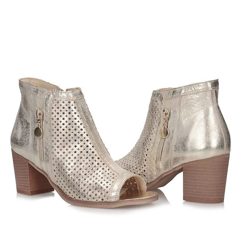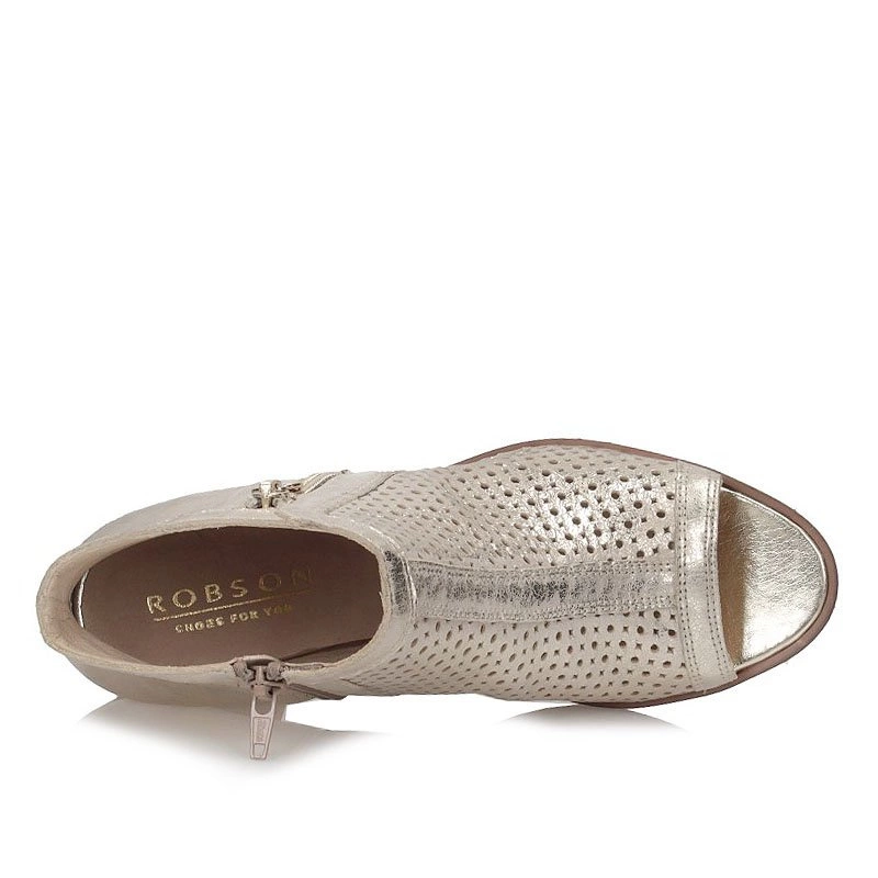 Ażurowe botki Robas idealnie sprawdzą się w wiosenno-letnich stylizacjach. Cholewka wykonana ze skóry naturalnej licowej. Botki zapinane na zamek, więc zakładanie jak i ściąganie botków jest bezproblemowe i szybkie. Wewnętrzna wyściółka wykonana ze skóry naturalnej, zadba o komfort naszych stóp. Nosek botków wycięty, nadający im wiosennego charakteru. Całość osadzona na wygodnym, grubym słupku o wysokości 6,5 cm. Podeszwa wykonana z tworzywa sztucznego.