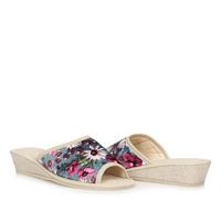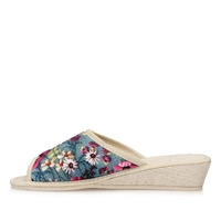 Komfort użytkowania to dla wielu Pań główna cecha, którą kierują się przy wyborze obuwia. Prezentujemy laczki marki Meteor, które idealnie spełnią oczekiwania Pań lubiących wygodę. Cholewka w wielokolorowym odcieniu wykonana z wysokiej jakości materiału tekstylnego, ozdobiona została modnym w tym sezonie motywem kwiatów. Wyściółka kapci to delikatny materiał, który zapewni nam najwyższą wygodę i przepuszczalność powietrza. Całość kapci oparto na klinie o wysokości 4,7 cm co zapewni nam odpowiednie ułożenie naszych stóp i wygodę podczas użytkowania. Podeszwa wykonana została z tworzywa sztucznego. Kapcie odciążą nasze nogi po wykonywaniu prac domowych i dadzą nam poczucie wygody i relaksu.