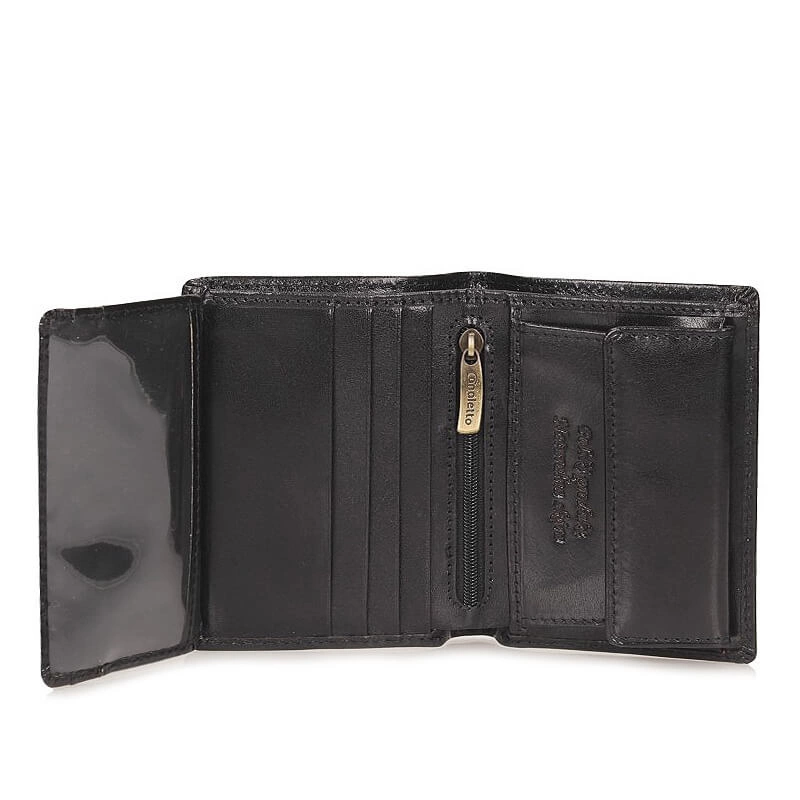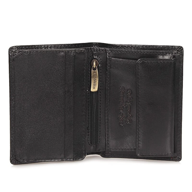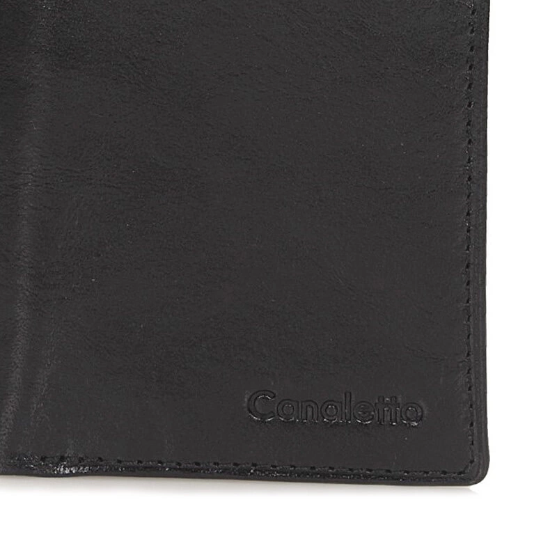 Marka Canaletto produkuję portfele z najwyższej jakości materiałów i dba o każdy szczegół. Przedstawiamy portfel w odcieniu czerni, który wykonano z  wysokogatunkowej skóry naturalnej. Model pojemny, który dzięki swoim wymiarom nie będzie zajmował dużo miejsca. Wewnątrz dwie przegrody na banknoty, jedna kieszeń zapinana na zamek oraz kieszeń do monet zapinana na zatrzask. Sześć przegród pozwoli nam pomieścić najpotrzebniejsze karty bankowe, a przezroczysta przegroda pomieści najważniejsze zdjęcia. Model, który świetnie sprawdzi się jako prezent.