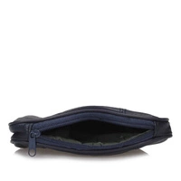 Dla kobiet kochających elegancję i piękny wygląd przedstawiamy mały, uroczy portfel w granatowym odcieniu. Prezentowany model wykonano ze skóry naturalnej, bardzo przyjemnej w dotyku. Dwukomorowy, każda komora zapinana na bigiel. Z tyłu portfela oraz na jego spodzie wszyto kieszenie, które zapinane są na zamek. Idealnie pomieści banknoty, bilon oraz jakieś małe dokumenty. Model jest mały, albo bardzo pojemny i funkcjonalny.