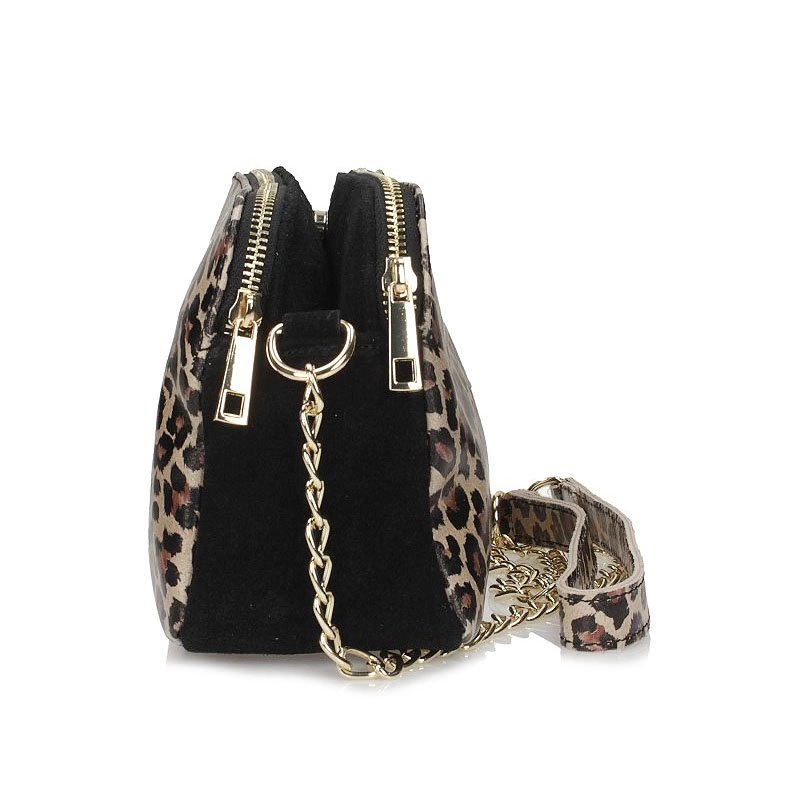 Najnowsza kolekcja torebek od znanej i cenionej marki Toscanio zachwyca świeżymi, oryginalnymi wzorami. Czarna w prześlicznym wzorze panterki, została wykonana z dbałością o najmniejszy szczegół listonoszka prezentuje się niesamowicie pięknie, producenci zadbali o każdy element. Torebka została wykonana z wysokogatunkowej skóry naturalnej w pięknym i niespotykanym wzorze zwierzęcym co nadaje całości niebywałego charakteru. Model trzykomorowy, dwie przegrody zapinane na zamek a trzecia na zatrzask. Model posiada długi pasek, dzięki któremu możemy nosić torebkę na ramieniu.