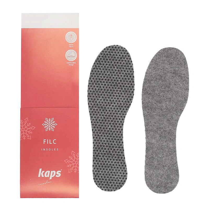 Wkładki filcowe Kaps to uniwersalne wkładki do obuwia przeznaczone na chłodniejsze miesiące oraz do użytku zawodowego. Łączą izolację termiczną z pewnym trzymaniem w bucie, poprawiając komfort podczas dłuższego chodzenia i stałej pracy.