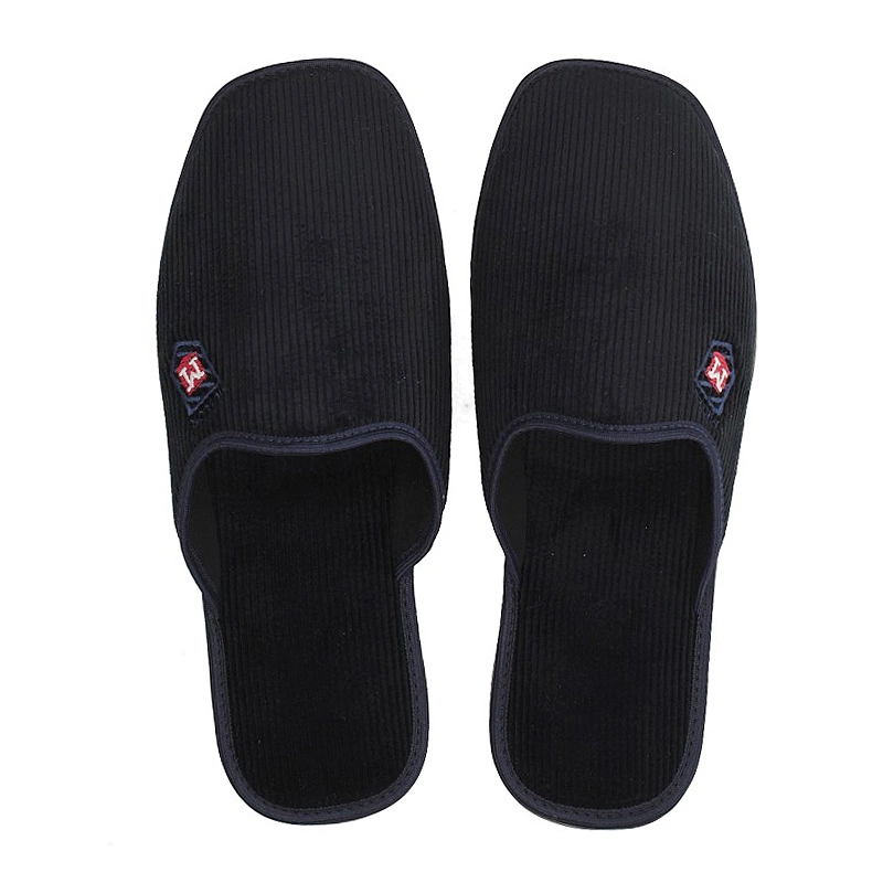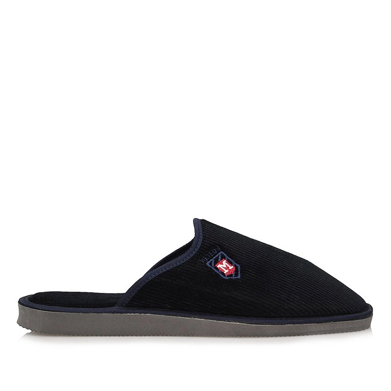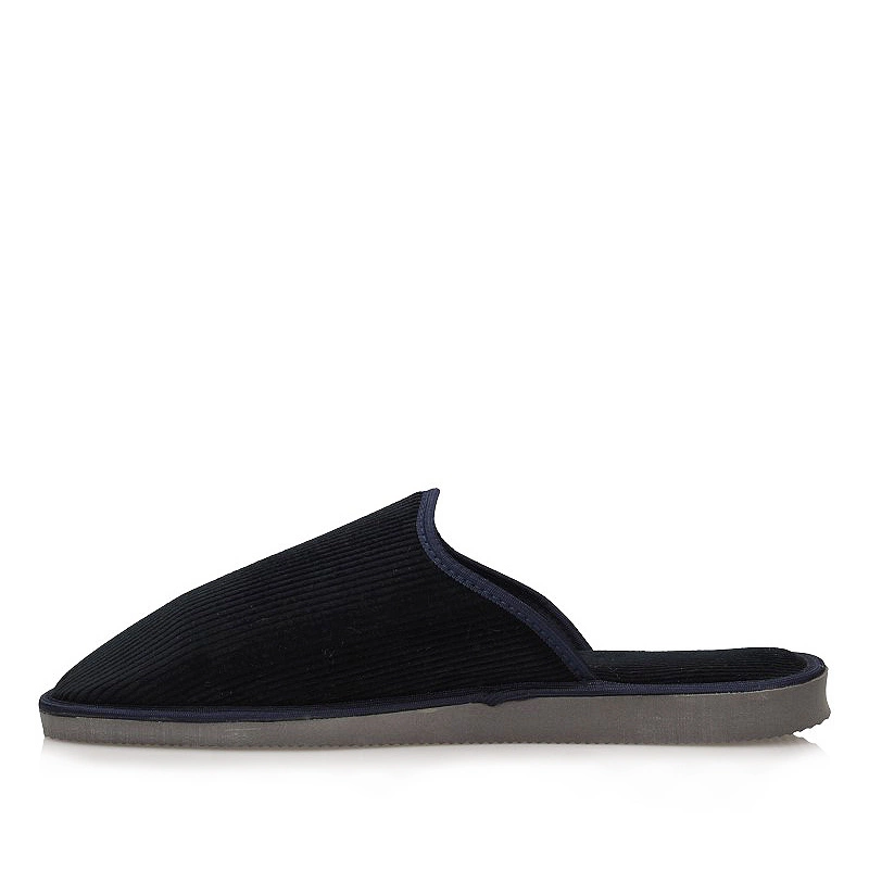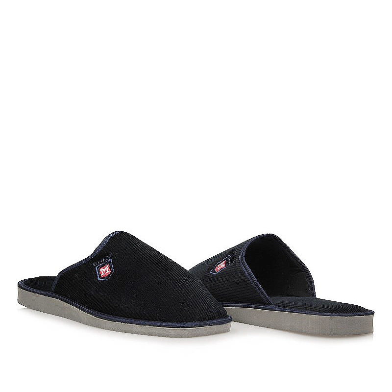 Domowe męskie laczki Meteor, gwarantują niesamowitą wygodę oraz wysoką jakość wykonania. Granatowa cholewka wyprodukowana została z wysokiej jakości materiału imitującego "sztruks". Kapcie charakteryzują się odpornością na ścieranie, wysoką trwałością oraz łatwością w utrzymaniu. Obuwie bardzo lekkie, przez co jest wyjątkowe i funkcjonalne. Nosek okrągły, wygodny w palcach. Podeszwa trwała, wykonana z wysokogatunkowego tworzywa.
