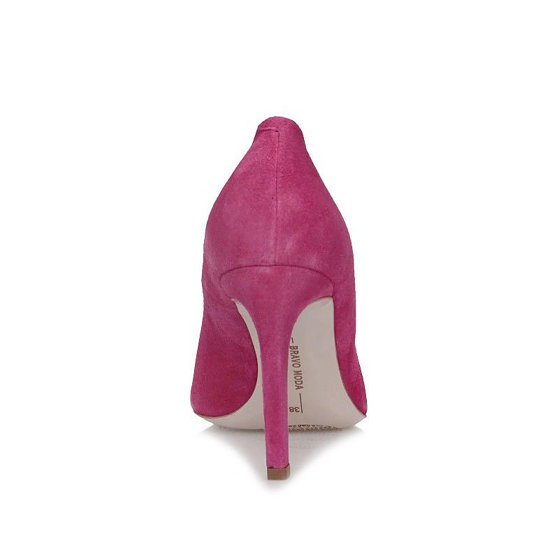 W tym sezonie marka Bravo Moda wyróżnia się oryginalnością i śmiałością. Prezentowane czółenka w ślicznym odcieniu różu, zostały wykonane z wysokogatunkowej skóry naturalnej zamszowej. Obuwie cechuje się niewyobrażalną wygodą oraz perfekcyjnym dopasowaniem do każdej tęgości stopy. Wnętrze oraz wkładka również zostały wykonane z bardzo miękkiej i przyjaznej dla ciała skóry naturalnej. Nosek lekko w szpic, zadarty ku górze. Obcas o wysokości 10 cm nadam nam wdzięku i gracji w każdym kroku. Podeszwa trwała, antypoślizgowa, odporna na ścieranie.