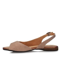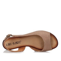 Śliczne sandałki z najnowszej kolekcji wiosenno-letniej renomowanej marki Lan-Kars. Wykonane z naturalnej skóry nubukowej w złotym odcieniu. Subtelna cholewka zdobiona modnym wzorem, została wycięta w pięcie oraz palcach. Dodatkowo na wysokości kostki utworzono delikatne zapięcie ze sprzączką, która układa się do stopy i przytrzymuje ją na miejscu. Środek wykonany z naturalnej skóry, dzięki czemu mamy większy komfort oraz wygodę podczas wielogodzinnego użytkowania. Trwała podeszwa, odporna na ścieranie, z właściwościami antypoślizgowymi. Sandały będą świetnym rozwiązaniem do codziennych stylizacji.