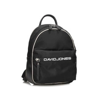 Plecak to niekwestionowany hit ostatnich kilku miesięcy, jeśli jesteś fanką modnych i wygodnych dodatków to prezentowany model od marki David Jones jest idealną propozycją dla Ciebie. Prezentowany model wykonany został z najwyższej jakości materiału tekstylnego w klasycznym czarnym kolorze ze srebrno-szarymi oraz białymi detalami. Plecak posiada jedną komorę oraz 2 dodatkowe, mniejsze kieszonki, jedną w przedniej a drugą w tylnej części. Plecak zapinany na zamek błyskawiczny, posiada regulowane szelki dzięki czemu doskonale dopasuje się do indywidualnych potrzeb każdej kobiety.