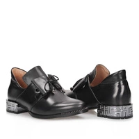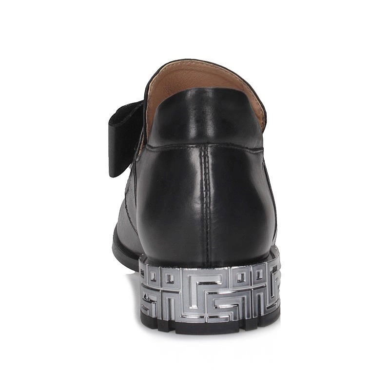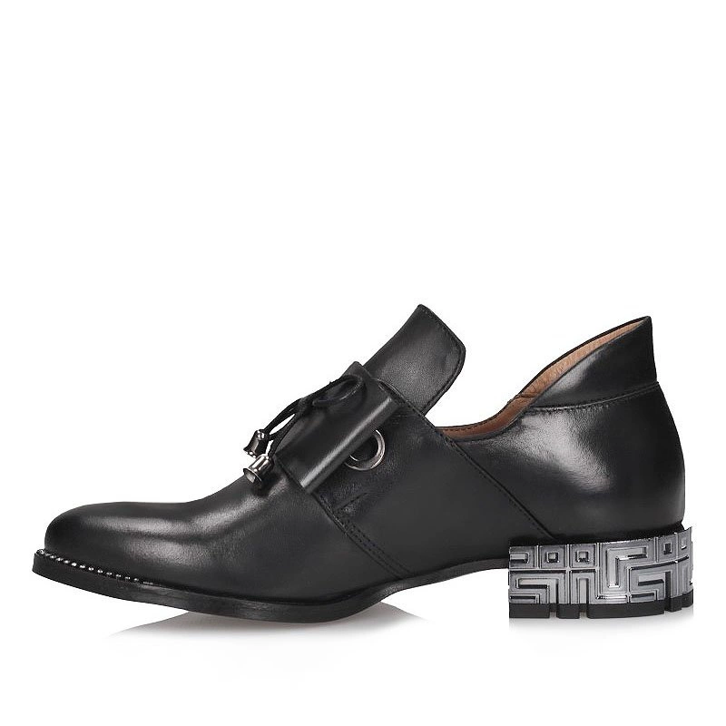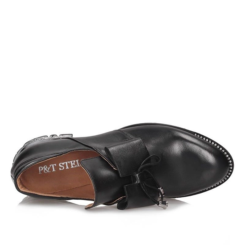 Marka Stella przedstawia nam nową propozycję półbutów, które świetnie wpiszą się w jesienne stylizację. Cholewka w czarnym odcieniu wykonana została ze skóry naturalnej licowej. Nosek lekko zaokrąglony. Wnętrze wykonane ze skóry ekologicznej i naturalnej, zadba o przepuszczalność powietrza i odpowiednią wygodę. Oryginalne zdobienie na cholewce w połączeniu z kokardką nadaję butą niepowtarzalności. Pięknie zdobiony obcas przyciągnie spojrzenia, a naszym stylizacją nada modnego charakteru. Podeszwa wykonana z tworzywa sztucznego z właściwościami antypoślizgowymi, przy nosku wykończona małymi cyrkoniami.
