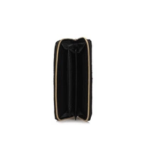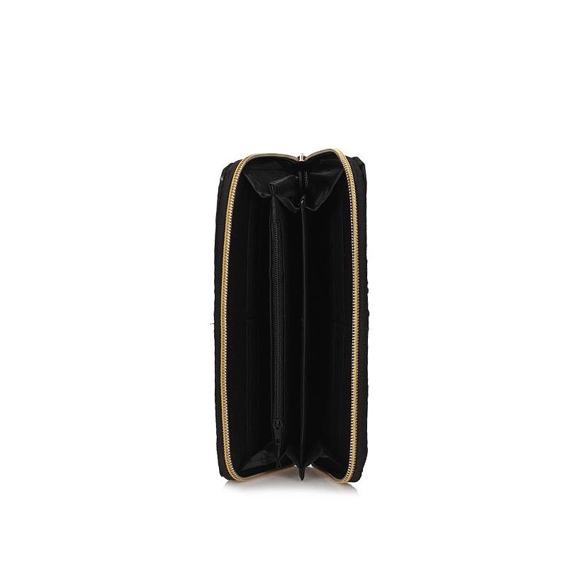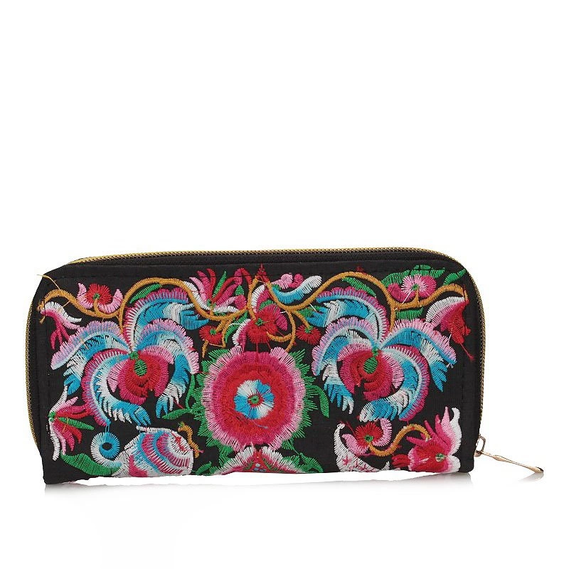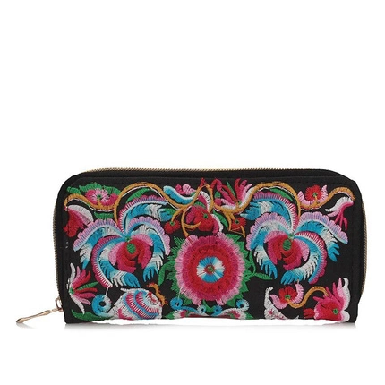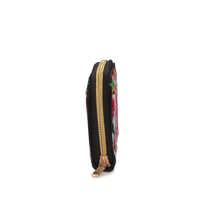 Portfel damski od lubianej marki Art Of Polo z najnowszej kolekcji. Wykonany został z wysokogatunkowego materiału tekstylnego w odcieniu czerni z wielokolorowym haftem. Model zapina się na zamek. W środku znajduje  się miejsce na bilon, banknoty oraz karty. Fason wpadnie w gusty wielu Pań.