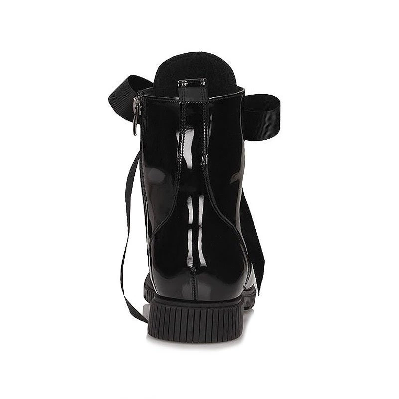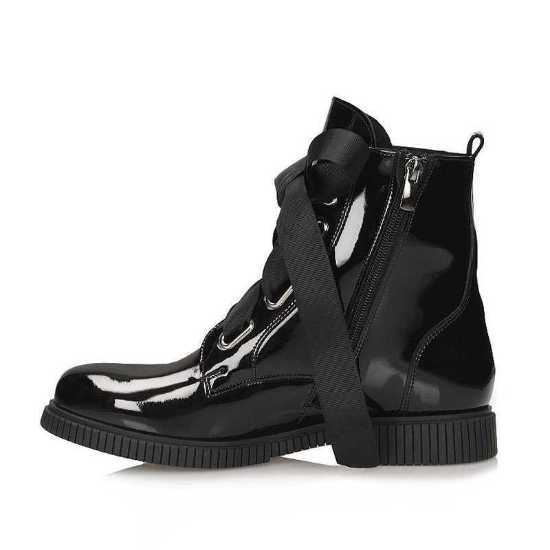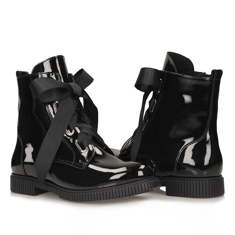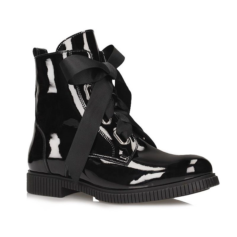 Marka Sempre prezentuje piękne lakierowane botki z najnowszej kolekcji. Cholewka modelu wykonano z naturalnej skóry lakierowanej w klasycznym kolorze czarnego. Wnętrze wyściełane zostało ociepliną. Botki sznurowane oraz zapinane na zamek, co umożliwia nam dopasowanie go do stóp i jego wygodne i szybkie zakładanie. Podeszwa wykonana z antypoślizgowego tworzywa sztucznego. Ten model spodoba się wielu Pań.