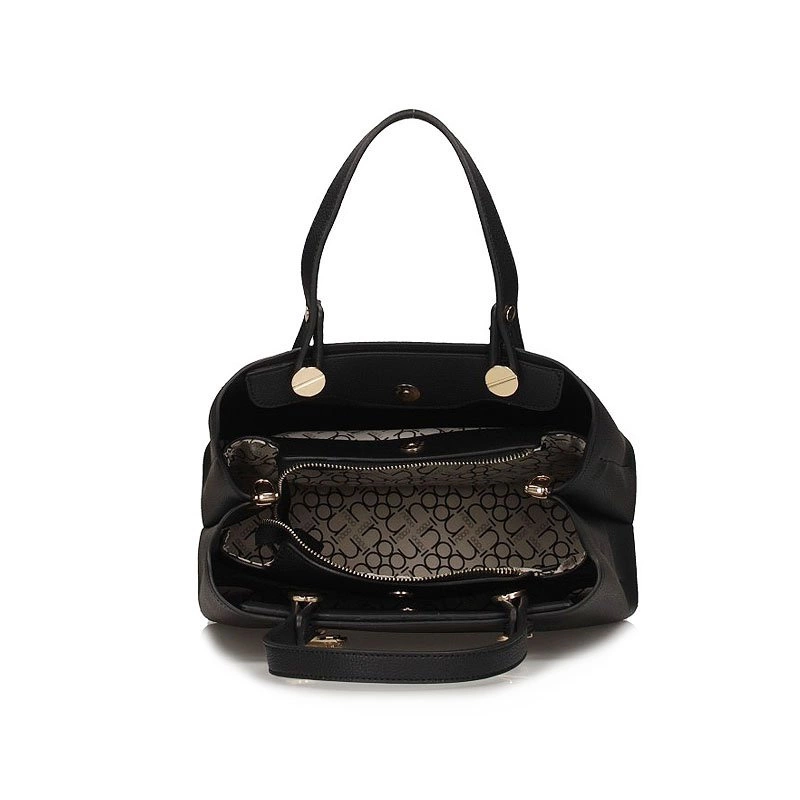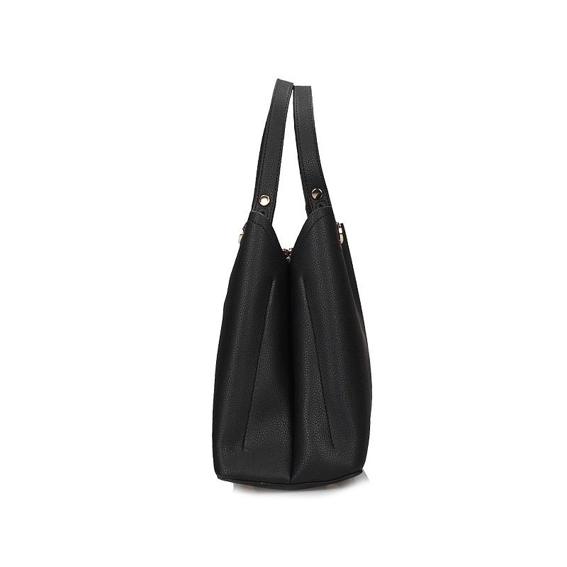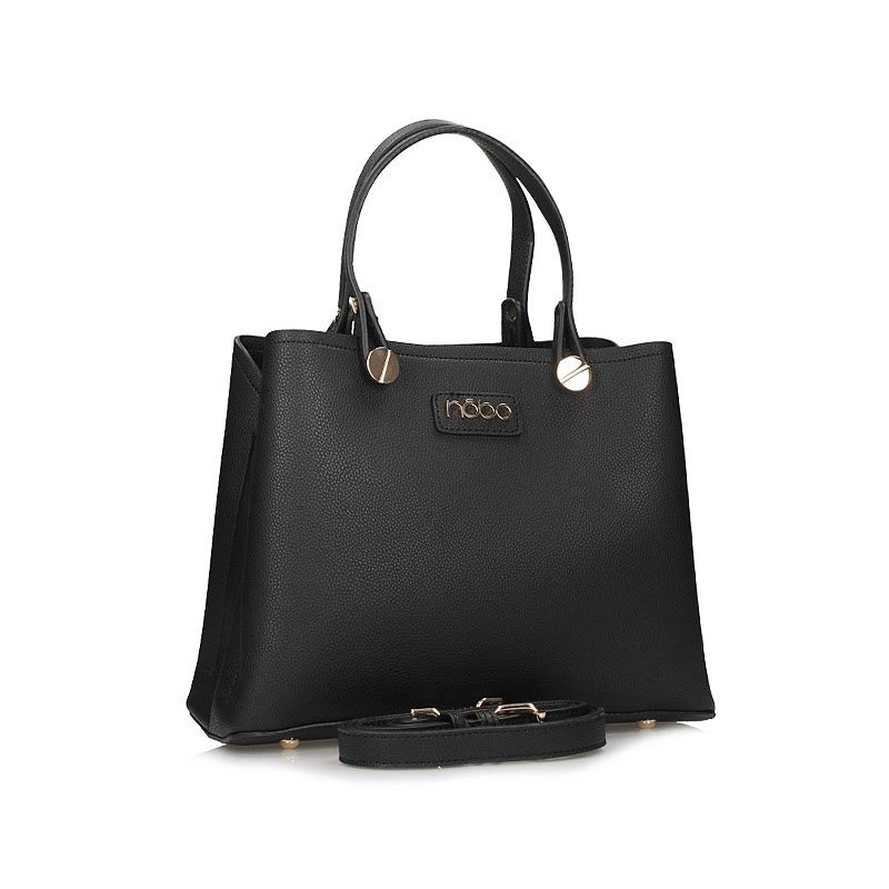 Torebka Nobo w kolorze czarnym. Wykonana ze skóry ekologicznej. Zapinana na dwa magnesy oraz zamek. Torebka posiada trzy komory, jedna zapinana na zamek i dwie komory zapinane na magnes. Torebka posiada kieszonki niezbędne na kobiece drobiazgi. Dodatkowo producent dołączył pasek dzięki, któremu możemy nosić torebkę na ramieniu. Przed uszkodzeniami będą chroniły nóżki ochronne.