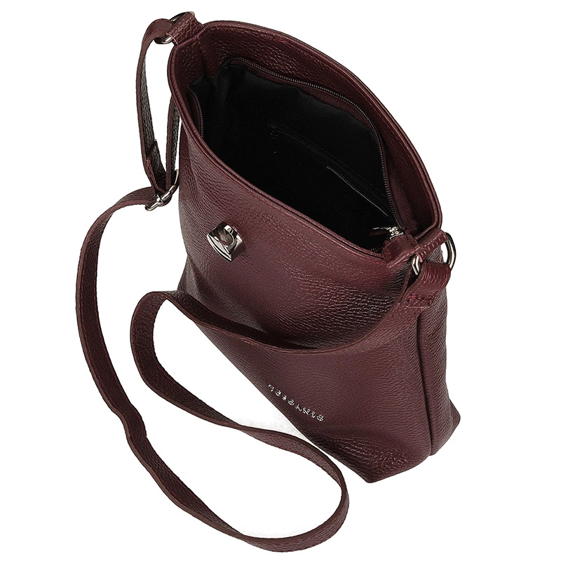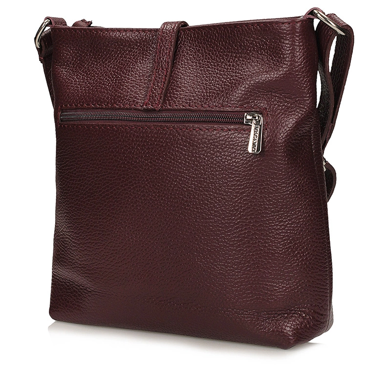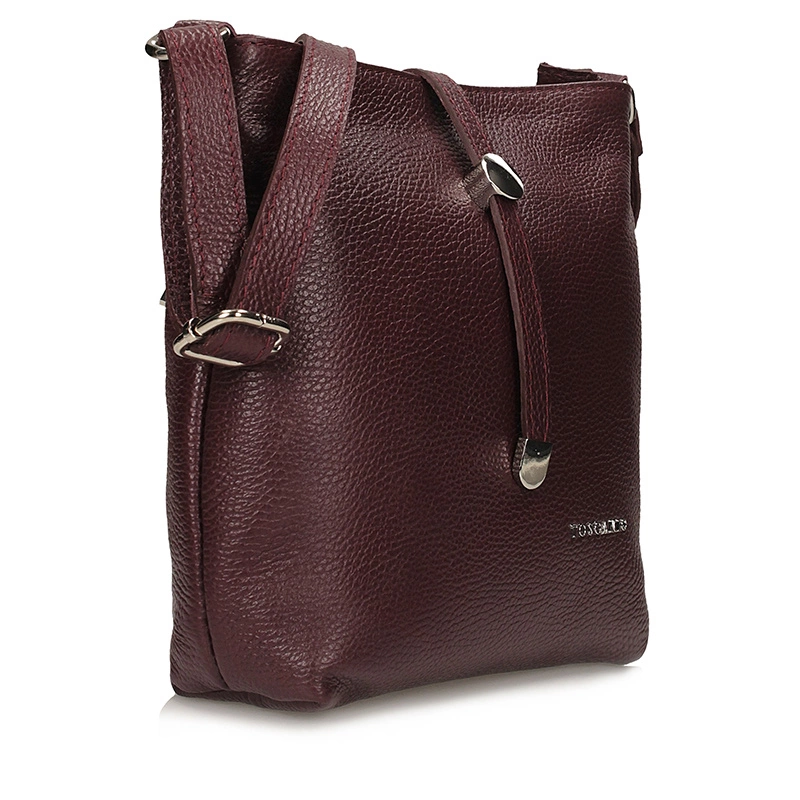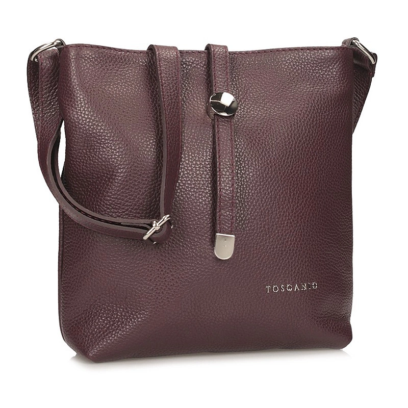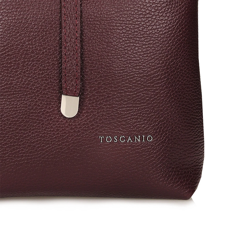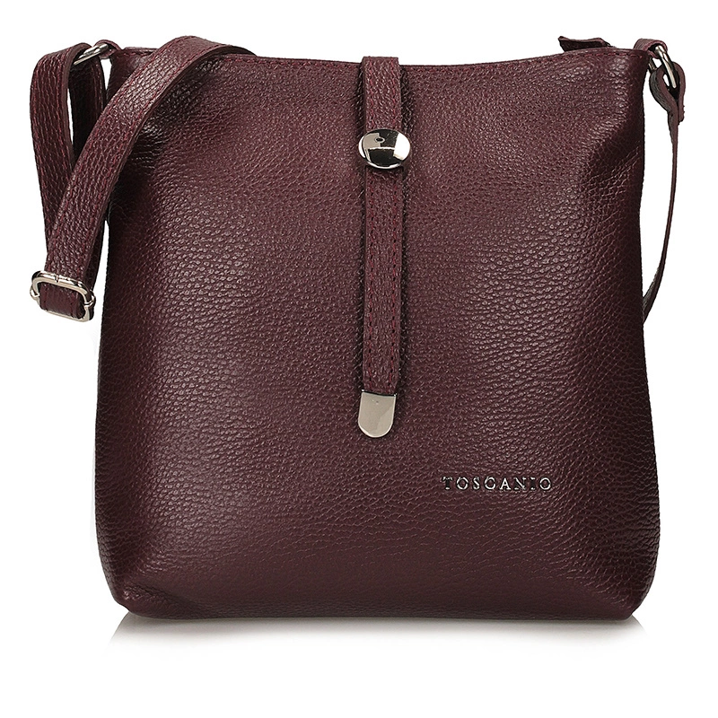 Włoska marka Toscanio prezentuje nam torebkę w odcieniu bordowym. Torebka całościowo wykonana została z wysokojakościowej skóry naturalnej. Model jednokomorowy zapinany na błyskawiczny zamek, w środku znajdziemy małą kieszonkę zapinaną na zamek. Dodatkowo z tyłu torebki znajduje się mała kieszonka zapinana na zamek, idealnie sprawdzi się na kobiece drobiazgi. Pasek, który został dołączony do torebki posiada możliwość regulacji.