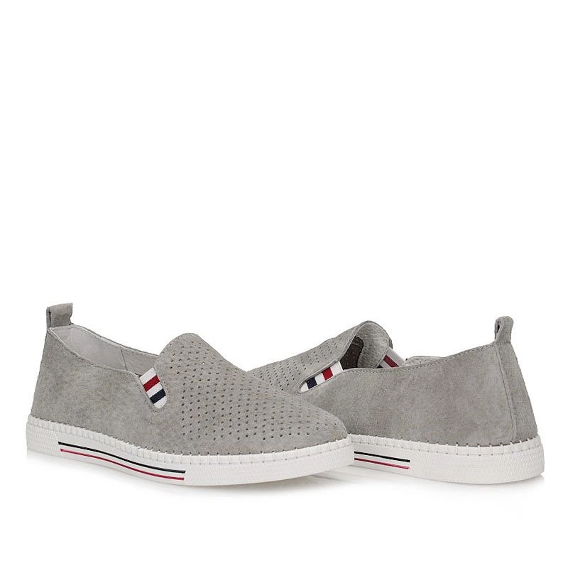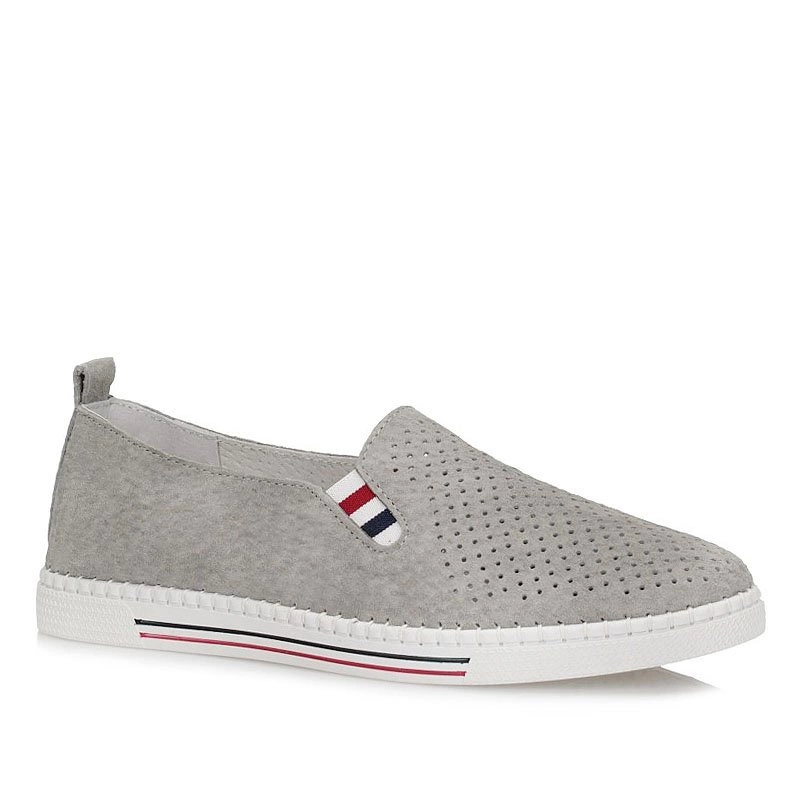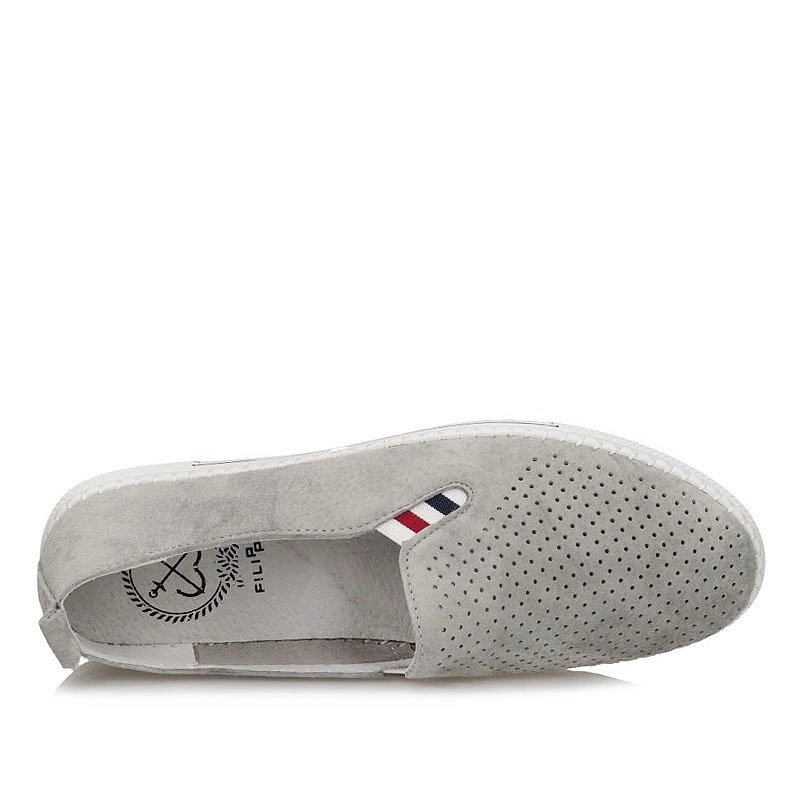 Lubiana marka Filippo przygotowała dla nas mokasyny z najnowszej kolekcji wiosenno-letniej. Cholewka została wykonana z wysokiej jakości skóry naturalnej nubukowej w szarym odcieniu. Model wsuwany, umożliwia on wygodne zakładanie jak i zdejmowanie. Wnętrze zostało wykonane z miękkiej jak i delikatnej skóry naturalnej. Nosek zaokrąglony, lekko uniesiony ku górze. Płaska, trwała oraz odporna na ścieranie podeszwa została wykonana z wysokogatunkowego tworzywa sztucznego z właściwościami antypoślizgowymi.