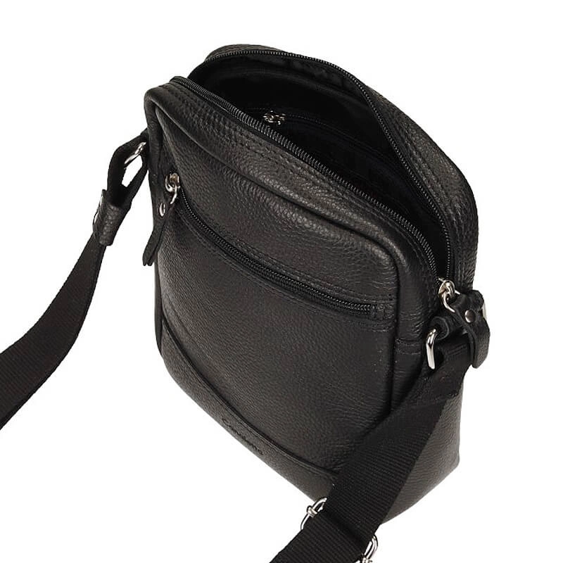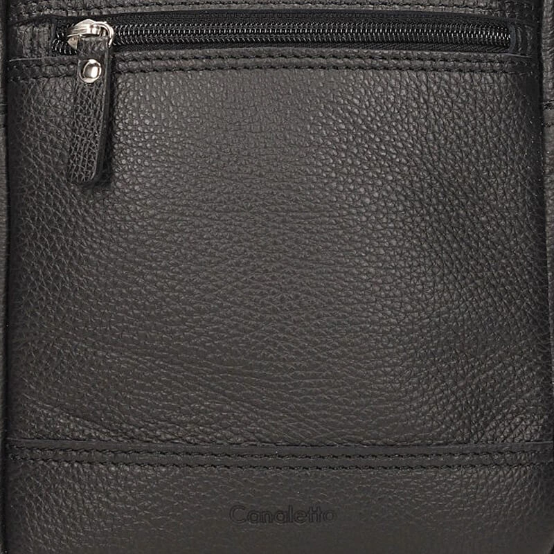 Znana i renomowana marka Canaletto przedstawia nam męską torebkę. Model ten został wykonany z skóry naturalnej w odcieniu czerni. Wyposażona w jedną dużą komorę, w której występuje mała przegroda oraz kieszeń zapinana na zamek na małe drobiazgi. Na przodzie torebki znajduje się kieszonka wyposażona w zamek. Na tyle fasonu jest jedna kieszonka, którą też się zapina na zamek. Model posiada również jeden długi pasek który jest regulowany.