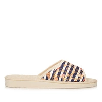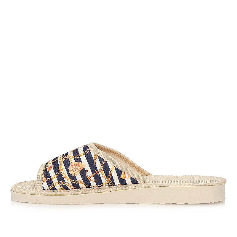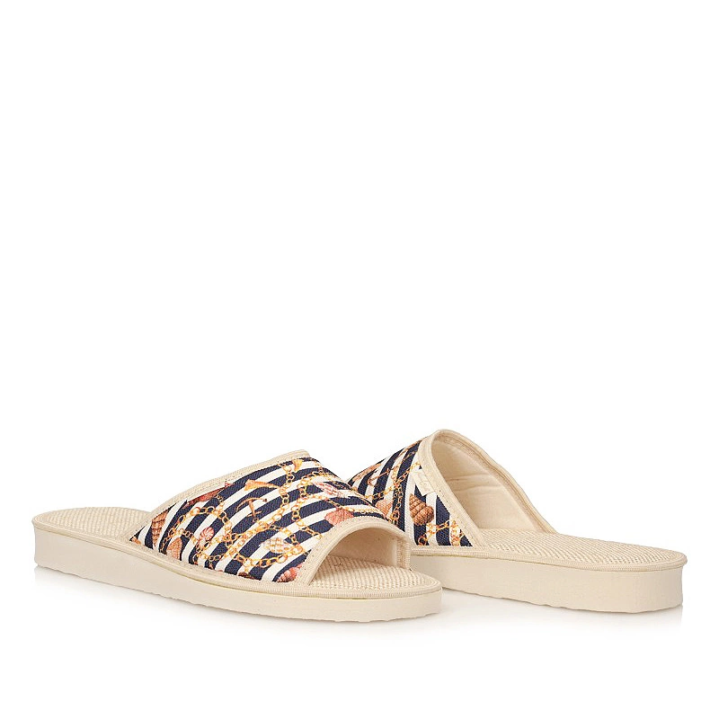 Renomowana polska marka Meteor przygotowała dla nas laczki domowe z kolekcji wiosenno-letniej. Cholewka kapcia została wykonana z bardzo delikatnej tkaniny w ślicznym odcieniu beżu. Wyściółka oraz wkładka zostały wykonane z wysokiej jakości tkaniny. Nosek zaokrąglony, odkryty, uniesiony lekko ku górze. Płaska oraz odporna na ścieranie podeszwa wykonana została z lekkiego tworzywa sztucznego z właściwościami antypoślizgowymi. Laczki wpadną w gust wielu Pań.