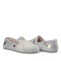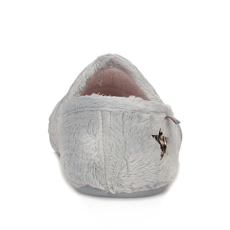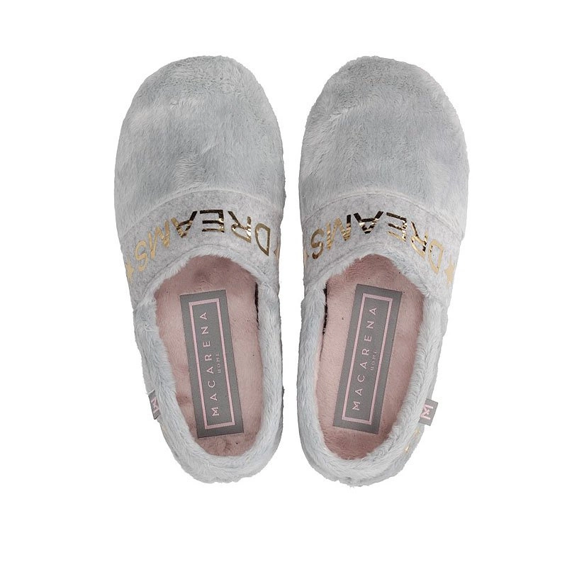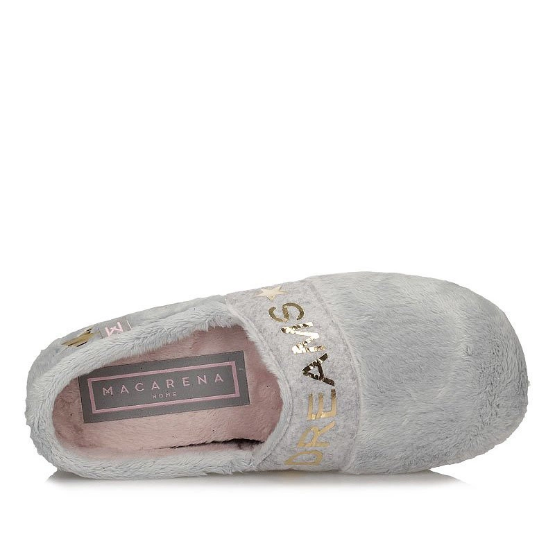 Renomowana hiszpańska marka Macarena prezentuje nam baletki domowe z najnowszej kolekcji. Cholewka kapci została wykonana z wysokogatunkowego tworzywa w odcieniu szarości z elementami różu. Model wsuwany, umożliwia nam na bezproblemowe zakładanie. Wyściółka oraz wkładka zostały wykonane z miękkiej tkaniny.Fason baletki posiada zaokrąglony nosek uniesiony lekko ku górze, który umożliwi nam na swobodne rozłożenie palców. Podeszwa wykonana została z trwałego tworzywa sztucznego z właściwościami antypoślizgowymi.