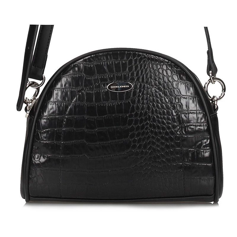 Renomowana  marka David Jones prezentuje nam torebkę z najnowszej kolekcji jesienno-zimowej. Model został wykonany z wysokogatunkowej skóry ekologicznej w  odcieniu klasycznej czerni. Fason jednokomorowy zapinany na zamek. Wewnątrz jednej komory znajduje się kieszonka na telefon, oraz kieszonka zapinana na zamek. Z tyłu  dodatkowo znajduje się  kieszonka na drobiazgi. Torebkę można nosić na ramieniu, dzięki regulowanego paska, dołączonego przez producenta.