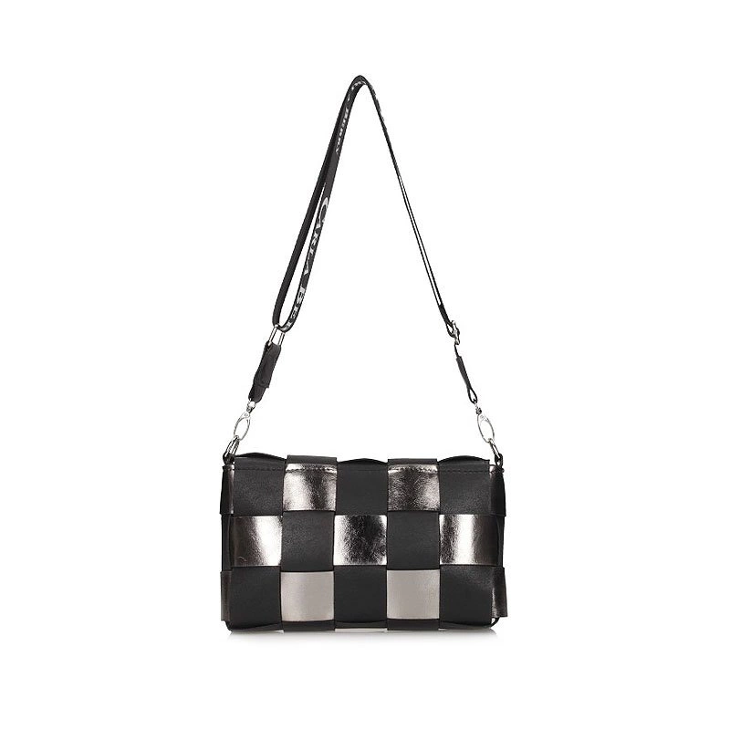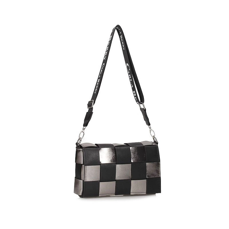 Renomowana marka Carla Berry przedstawia nam torebkę z najnowszej kolekcji jesienno-zimowej. Fason wykonano ze skóry ekologicznej z motywem kratki w odcieniu czarnym. Jednokomorowa, wewnątrz kieszonka na kobiece drobiazgi i kieszonka na telefon. Całość zapinana na zatrzask. Wyjątkowego wyglądu nadaje kratka czarno srebrna. Długi pasek pozwoli dostosować się do indywidualnych potrzeb, na pasku została napisana marka torebki na pasku. Model świetnie dopasuje się do wielu stylizacji.
