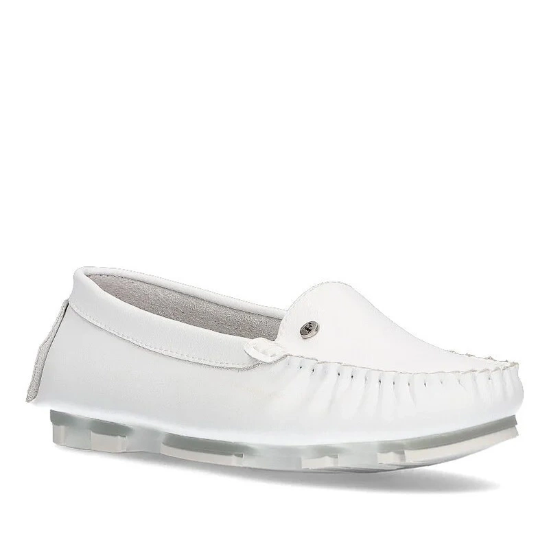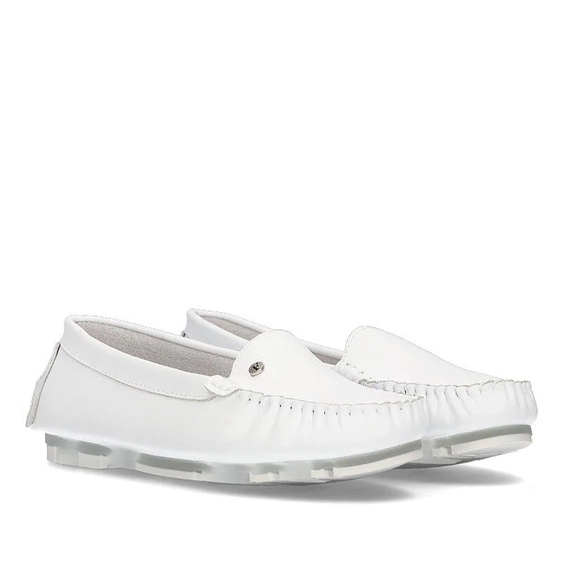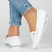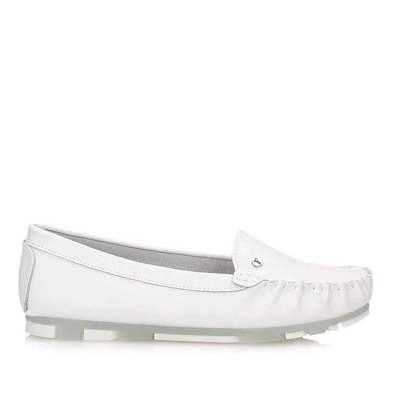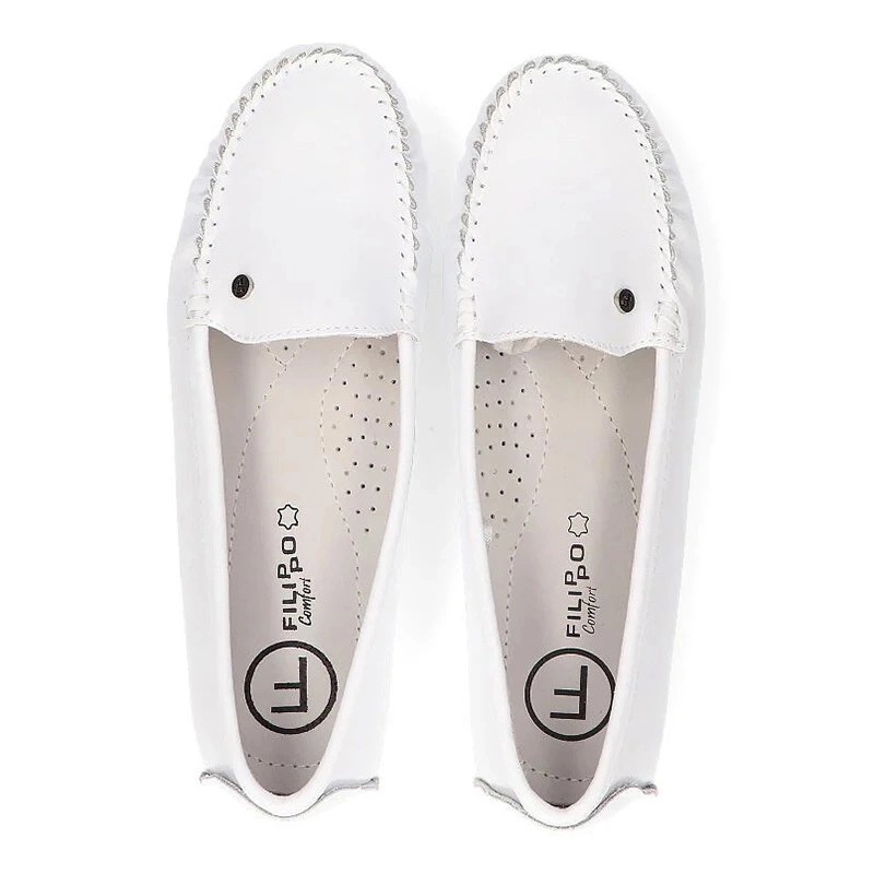 Znana oraz bardzo ceniona marka Filippo przedstawia nam mokasyny z najnowszej kolekcji wiosenno-letniej. Cholewka całościowo została wykonana z wysokiej jakości skóry naturalnej licowej w odcieniu śnieżnej bieli. Model wsuwany, co umożliwia nam szybkie oraz wygodne zakładanie jak i zdejmowanie obuwia. Wyściółka i wkładka zostały wyściełane z przyjaznej i miękkiej skóry naturalnej. Nosek lekko zaokrąglony, lekko uniesiony ku górze. Model na płaskiej podeszwie. Trwała, odporna na ścieranie podeszwa została wykonana z wysokogatunkowego tworzywa sztucznego z właściwościami antypoślizgowymi. Mokasyny sprawdzą się do każdej stylizacji.
