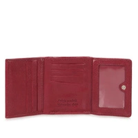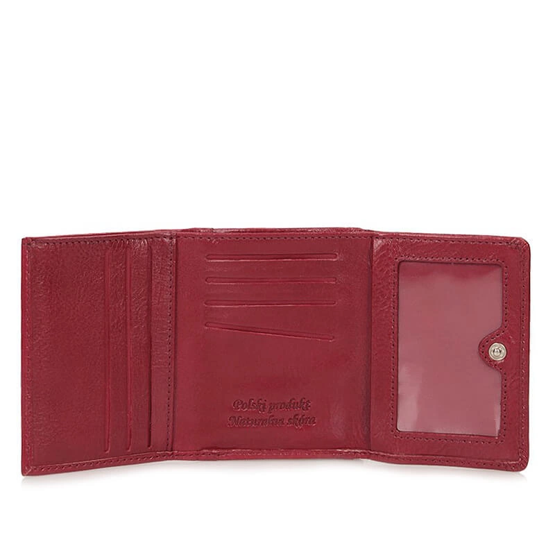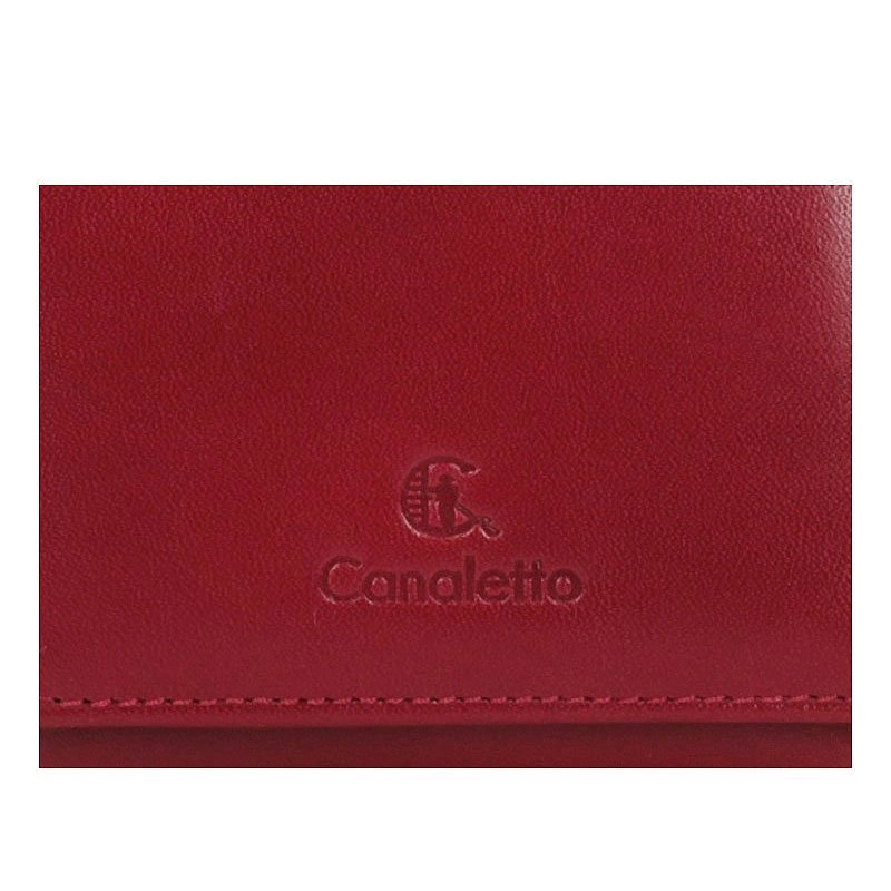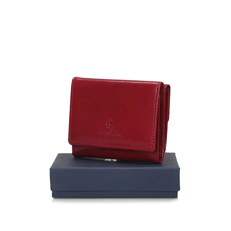 Marka Canaletto prezentuje nam portfel damski. Model wykonany z wysokiej jakości skóry naturalnej w odcieniu czerwieni. Fason zapinany na solidny zatrzask, wewnątrz znajduje się miejsce na banknoty, karty, zdjęcia oraz wizytówki. Na tyle portfela znajduje się kieszonka, na bilony zapinana na błyskawiczny zatrzask. Na przodzie portfela znajduje się logo marki.