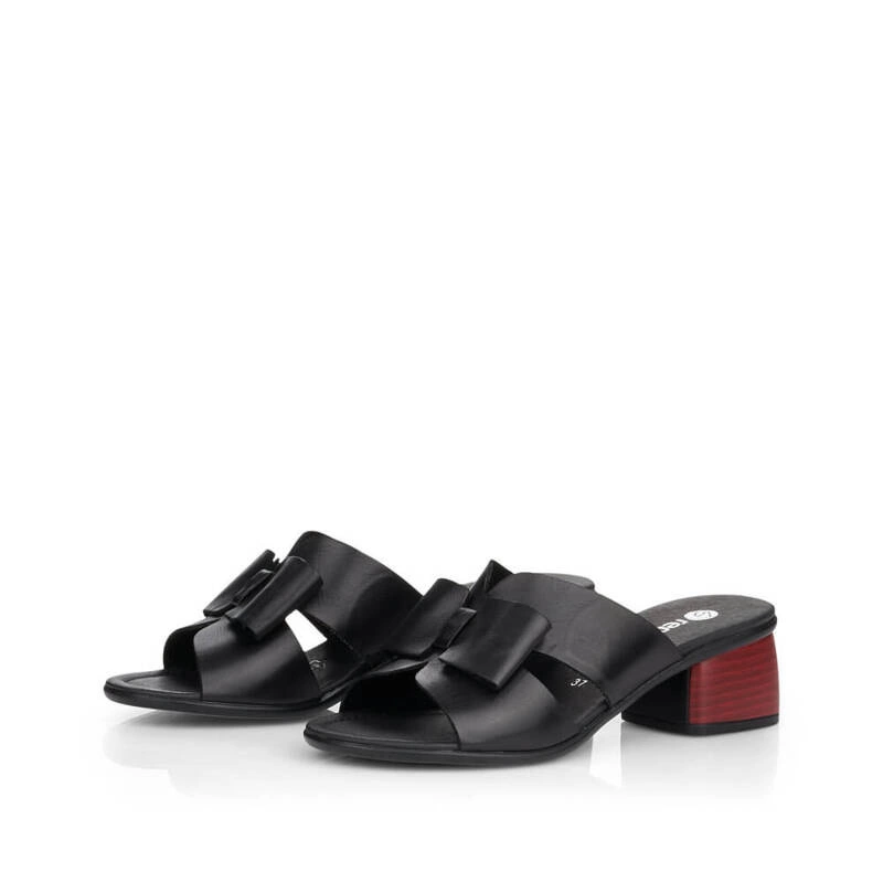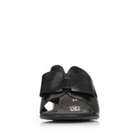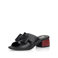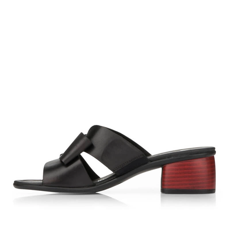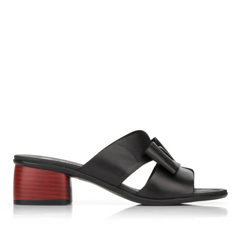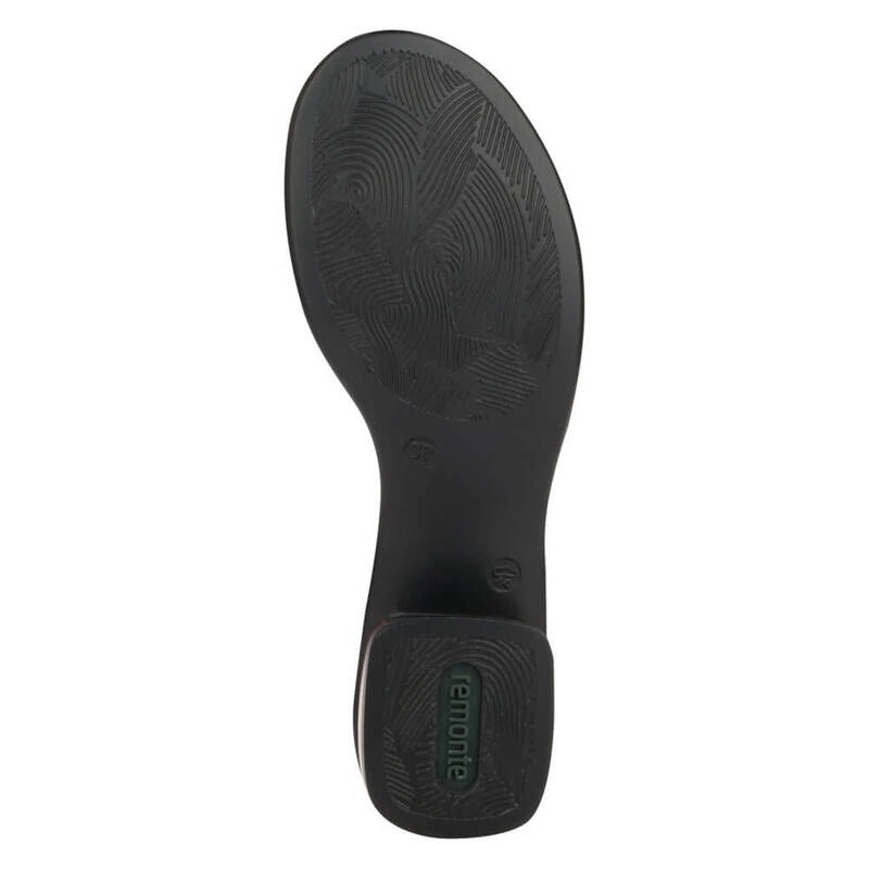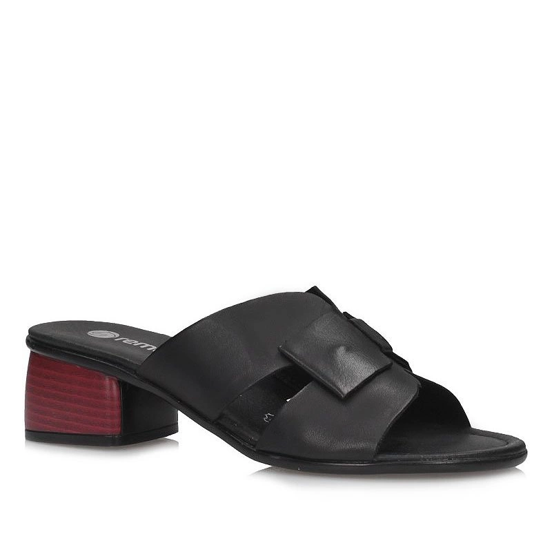 Renomowana, marka Remonte przedstawia nam nowy model klapek damskich z najnowszej kolekcji wiosenno-letniej. Cholewka wykonana została z wysokiej jakości skóry naturalnej licowej w czarnym klasycznym odcieniu. Wnętrze zostało wyściełane z miękkiej oraz delikatnej skóry naturalnej. Nosek odkryty. Całość oparto na niewielkim, bezpiecznym 4,5-centymetrowym obcasie typu klocek. Do wyprodukowania podeszwy zastosowano trwałe, odporne na ścieranie tworzywo sztuczne. Klapki dopasują się do każdej stylizacji.