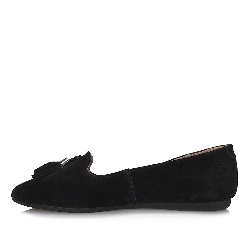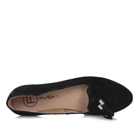 Bardzo ceniona marka Filippo przygotowała dla nas śliczne balerinki z wiosenno-letniej kolekcji. Wierzch został wykonany z wysokojakościowej skóry naturalnej nubukowej w odcieniu czerni. Wyściółka oraz wkładka zostały wykonane z miękkiej oraz delikatnej dla stóp skóry ekologicznej oraz skóry naturalnej. Z przodu cholewki znajduje się frędzel, który nadaje ładnego wyglądu balerinkom. Model obuwia wsuwany, co pozwala nam na szybkie jak i wygodne zakładanie. Odporna na ścieranie płaska podeszwa wykonana została z wysokogatunkowego tworzywa sztucznego o właściwościach antypoślizgowych. Balerinki idealnie dopasują się do różnych stylizacji.