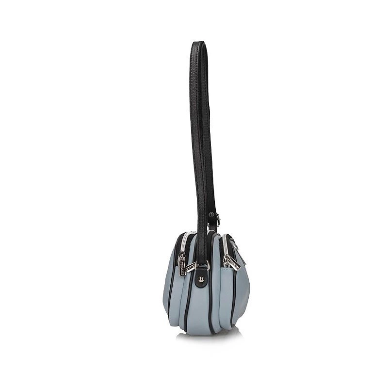Znana i lubiana Włoska marka Toscanio przedstawia nam torebkę z najnowszej kolekcji w kolorze błękitnym. Została ona wykonana ze skóry naturalnej. Posiada trzy komory oraz jedną kieszonkę na przodzie torebki, zapinane na zamek. Torebka ma regulowany pasek który umożliwia nam noszenie torebki na ramieniu. Model nie mieszczący A4.