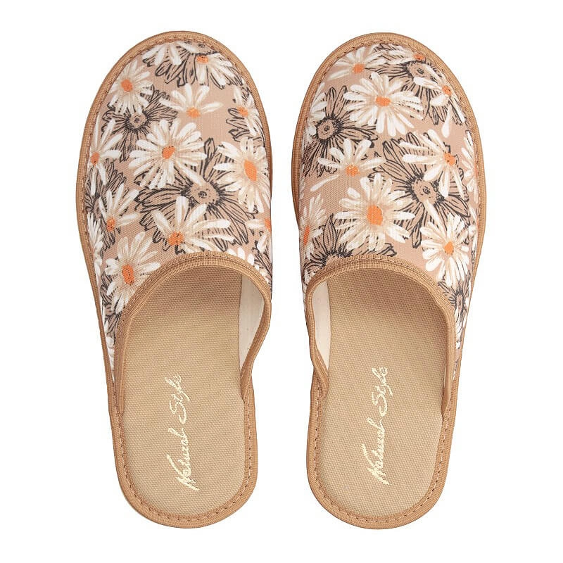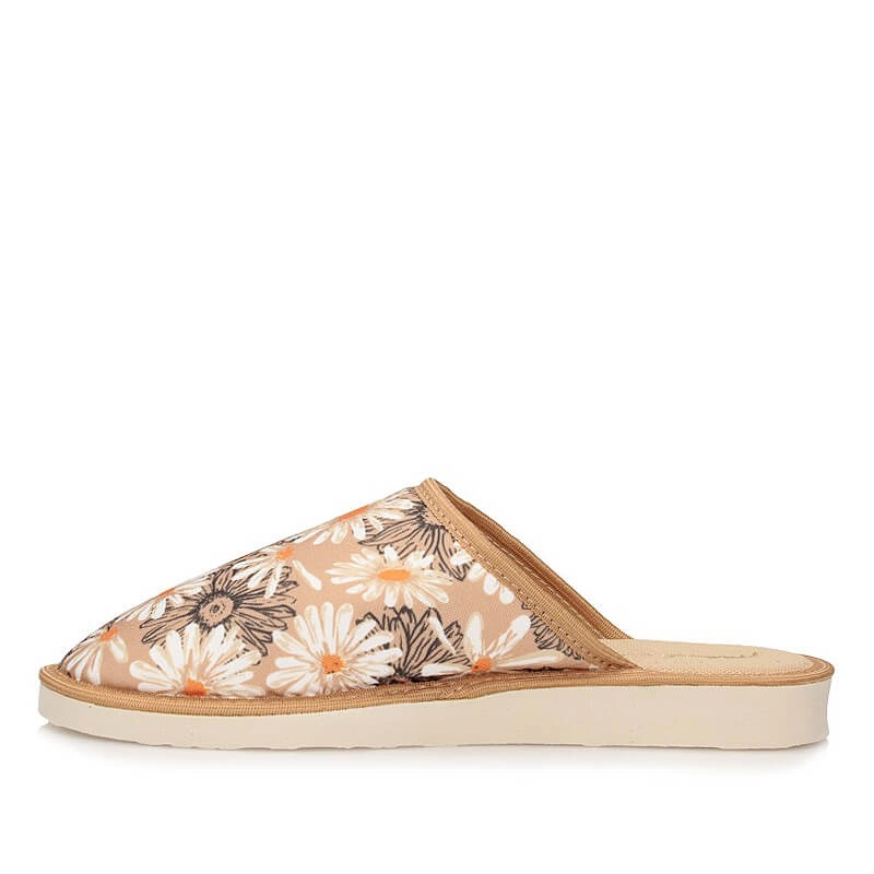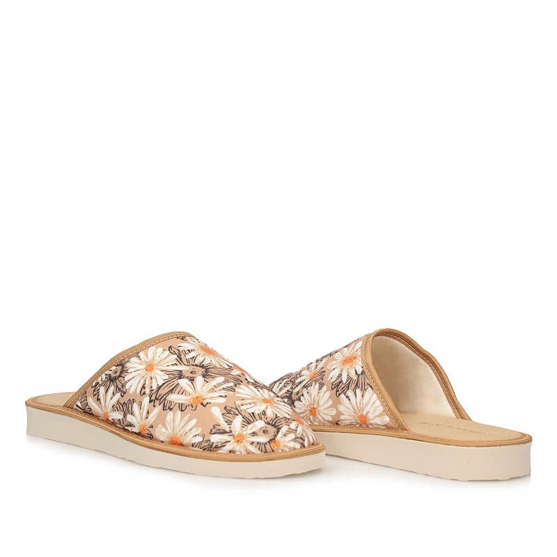 Znana marka meteor przedstawia nam laczki domowe z najnowszej kolekcji jesienno zimowej. Model w kolorze beżowym wykonany został z wysokiej jakości materiału tekstylnego. Wkładka delikatna dla stóp wykonana została z tkaniny. Cholewka przyozdobiona została ciekawym motywem kwiatowym. Nosek zaokrąglony, lekko uniesiony ku górze dzięki czemu swobodnie możemy rozłożyć palce. Podeszwa trwała, z właściwościami antypoślizgowymi.