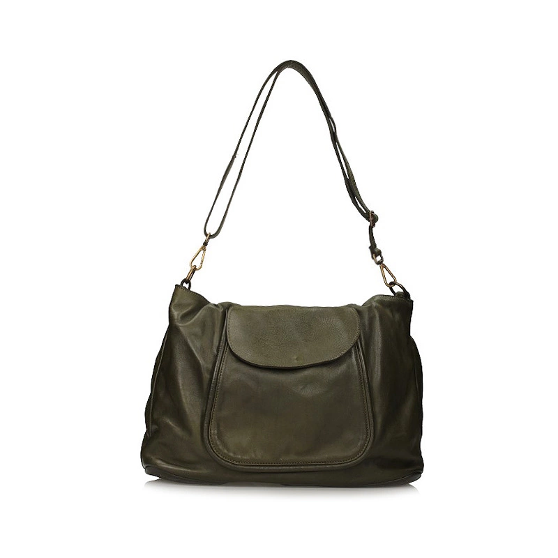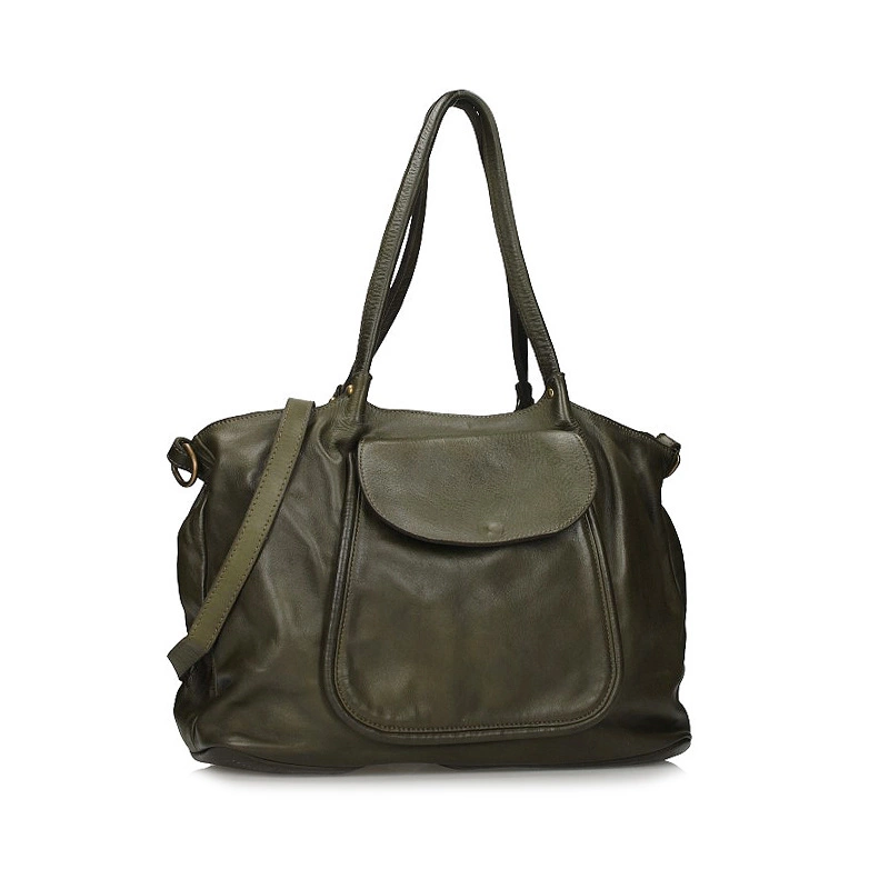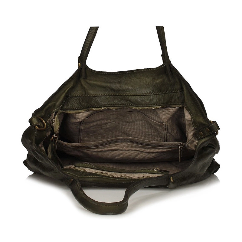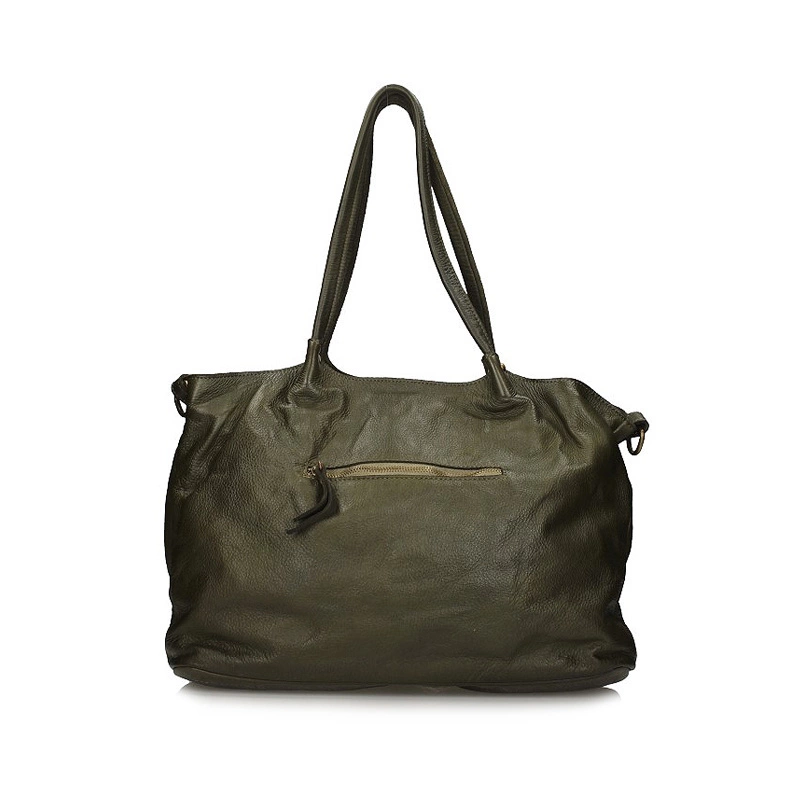 Znana oraz lubiana marka Toscanio przedstawia nam kolejny model z najnowszej kolekcji jesienno-zimowej. Torebka wykonana została z wysokiej jakości skóry naturalnej w odcieniu zielonym. Dwukomorowa, zapinana na zamek błyskawiczny. Środek torebki przegradza większą kieszeń zapinana również na zamek,która idealnie sprawdzi się na przechowywanie kobiecych drobiazgów. Wnętrze torebki wyposażone zostało w kieszonkę zapinaną na zamek błyskawiczny oraz mniejszą kieszeń na telefon,co na pewno ułatwi nam organizację. Model posiada uchwyty oraz dołączony dłuższy, skórzany pasek,dzięki czemu torbę nosić możemy w ręku lub na ramieniu. Dodatkowo fason wyposażony został w kieszeń znajdującą się z przodu produktu,zapinaną na magnes oraz jedną kieszeń z tyłu zapinaną na zamek błyskawiczny. Modny wygląd torebki oraz odcień idealnie wpisze się w wiele kobiecych stylizacji.