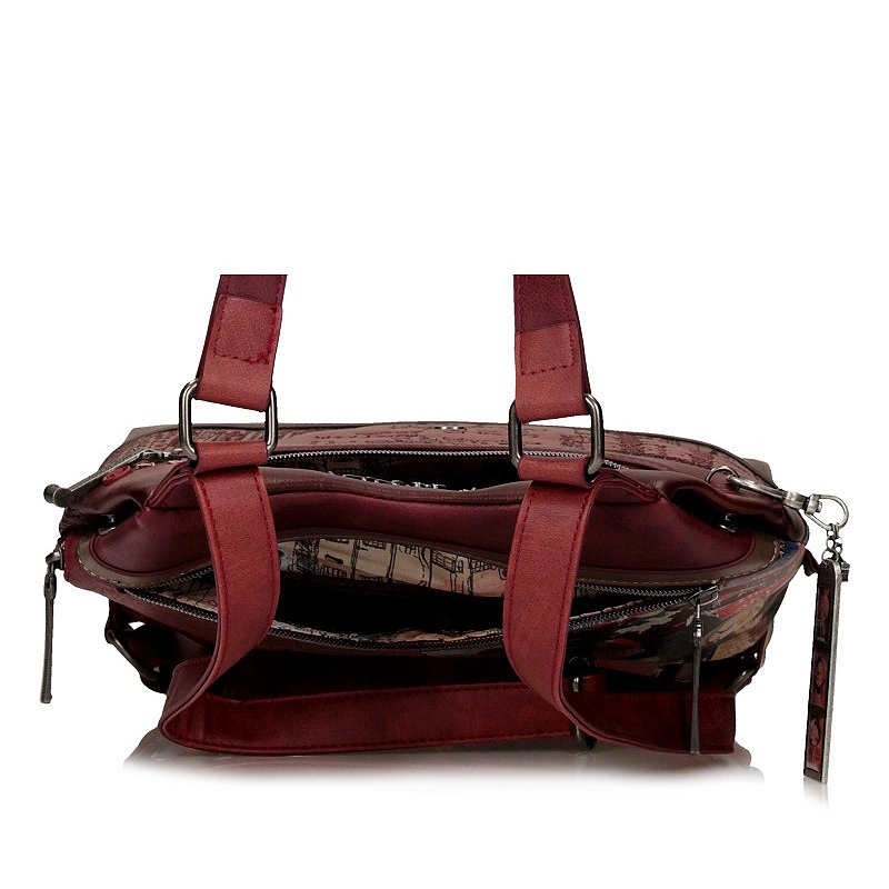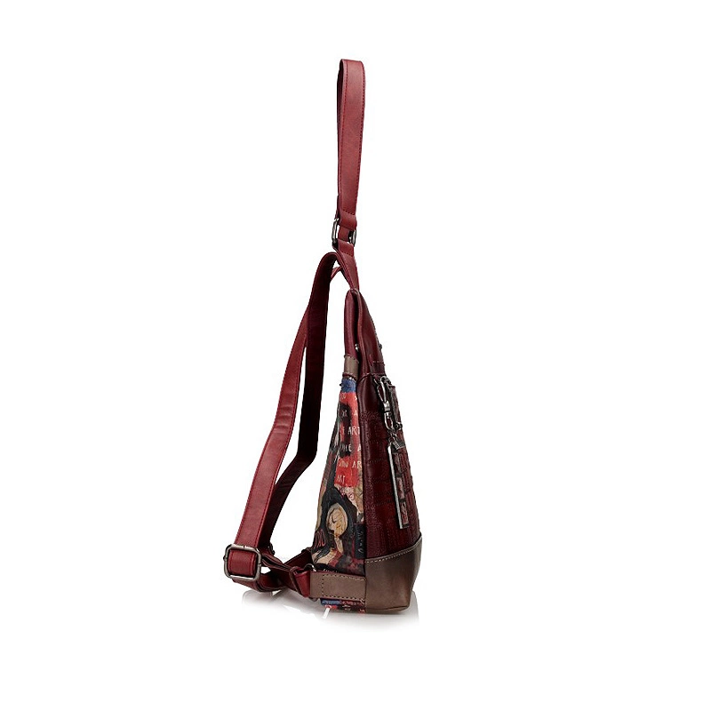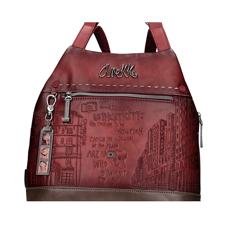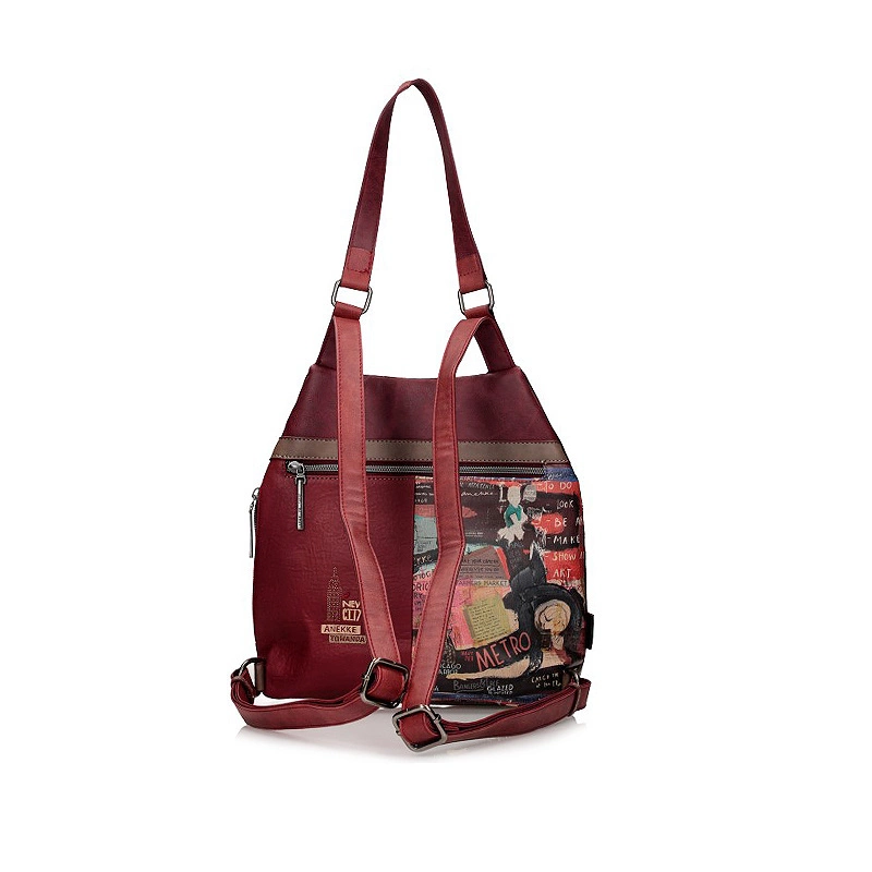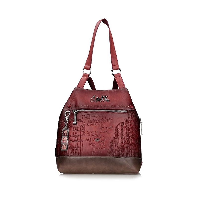 Znana oraz lubiana marka Anekke przedstawia nam torebko-plecak. Model wykonany został ze skóry ekologicznej w modnym połączeniu odcieni brązu oraz czerwieni. Fason posiada dwie komory zapinane na wygodny w użytkowaniu zamek błyskawiczny oraz z boku ukryta została kieszonka również zapinana na zamek. Plecak ozdobiono pięknymi nowoczesnymi nadrukami, haftami oraz uroczym brelokiem, dzięki czemu jest on oryginalny i niespotykany. Ciekawy model, który można nosić jako torebkę lub jako plecak wypełni nie jedną kobiecą stylizację. Format mieszczący A4.