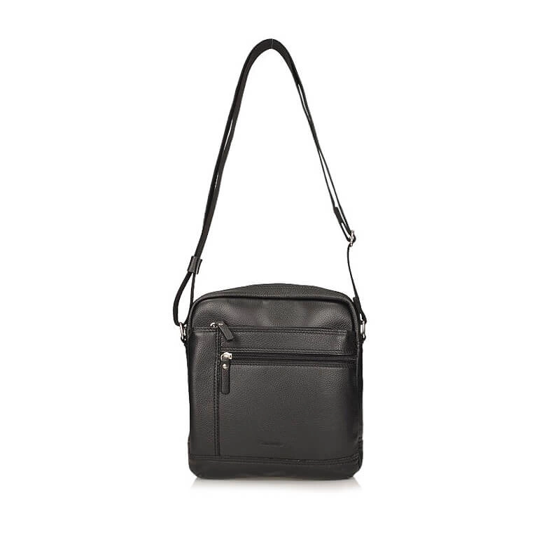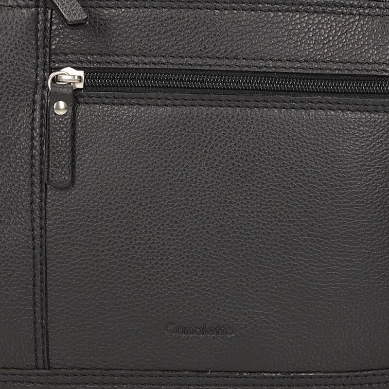 Znana oraz lubiana marka Canaletto przedstawia nam torbę męską z najnowszej kolekcji. Model w kolorze czarnym wykonany został z wysokiej jakości skóry naturalnej. Fason posiada jedną główną komorę zapinaną na zamek. Z tyłu oraz z przodu znajdują się mniejsze kieszonki zapinane na zamek, idealnie sprawdzą się na męskie drobiazgi. Na przodzie wytłoczono logo marki. Dzięki długiemu paskowi z możliwością regulacji możemy dopasować je do naszych potrzeb.